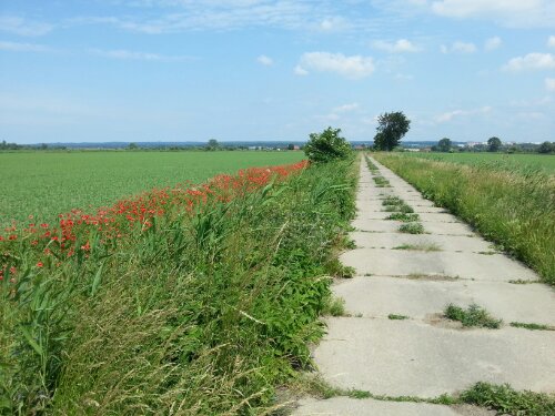 It was a quiet pretty road through the fields in the bright sunlight. Little villages, fields of wheat and dotted with colorful flowers.