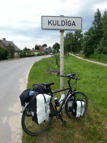 Then back to the road and the heat. In through the forest. Only short stops to throw down some MΓΌsli bars before being attacked by massive flesh eating flies that lurk in the forest, but that can’t keep up with my cycling speed. Lunch in the small seaside town of Pavilosta before further on to Kuldiga.
