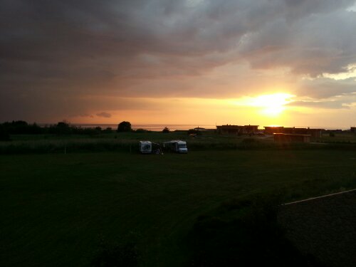 Through the town Salacgriva on the A1. No camping grounds there. Then, in Kuivizi, the camping ground I was heading for turned out to be a conference centre too. And they had a free room for €50. I took it and admired the sunset before going for a big feed in the quality restaurant.