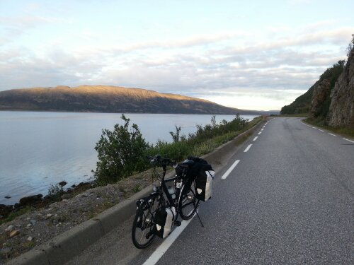 I am infinitely more happy cycling at night away from the pilgrim trail feeling. I went to bed at 20:00. At 22:45 the ice cream van drove past playing its summery melody. Buses of tourists rolled in from everywhere. All going to the North Cape. At night they sleep. Except arctic-cycler.