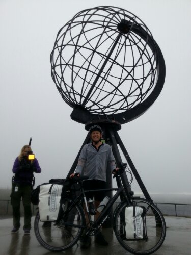 Amazing light cycling at night up the Porsangen fjord, 5000km from Holland in the North Cape tunnel. And the North Cape where I was interviewed for norwegian TV. A fantastic day.