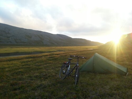 The ride was dry. As we passed a very pretty glacial valley, I asked if the one side road I had seen on the map goes there. The answer: Yes. My camping spot for the day.