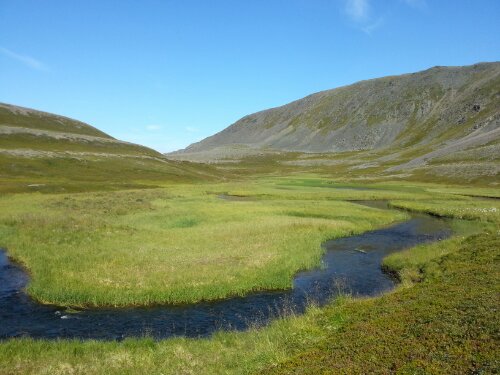 A hike in paradise. My private valley. My private fjord. Sun. Warm. A smile in my heart. The smell of cloudberries on my fingers.