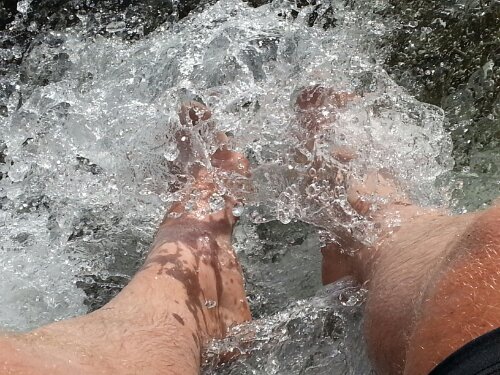 Then it was time for watching the salmon jump. Being so hot, it was lovely dangling my feet in the cool water next to a gushing waterfall.