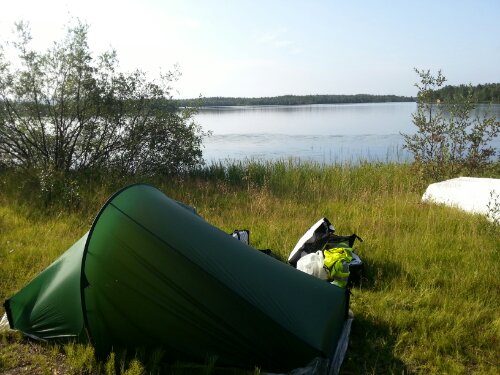 My humble little camp site looking out over Russia looks much nicer after a sleep, some food in the stomach, and sun.
