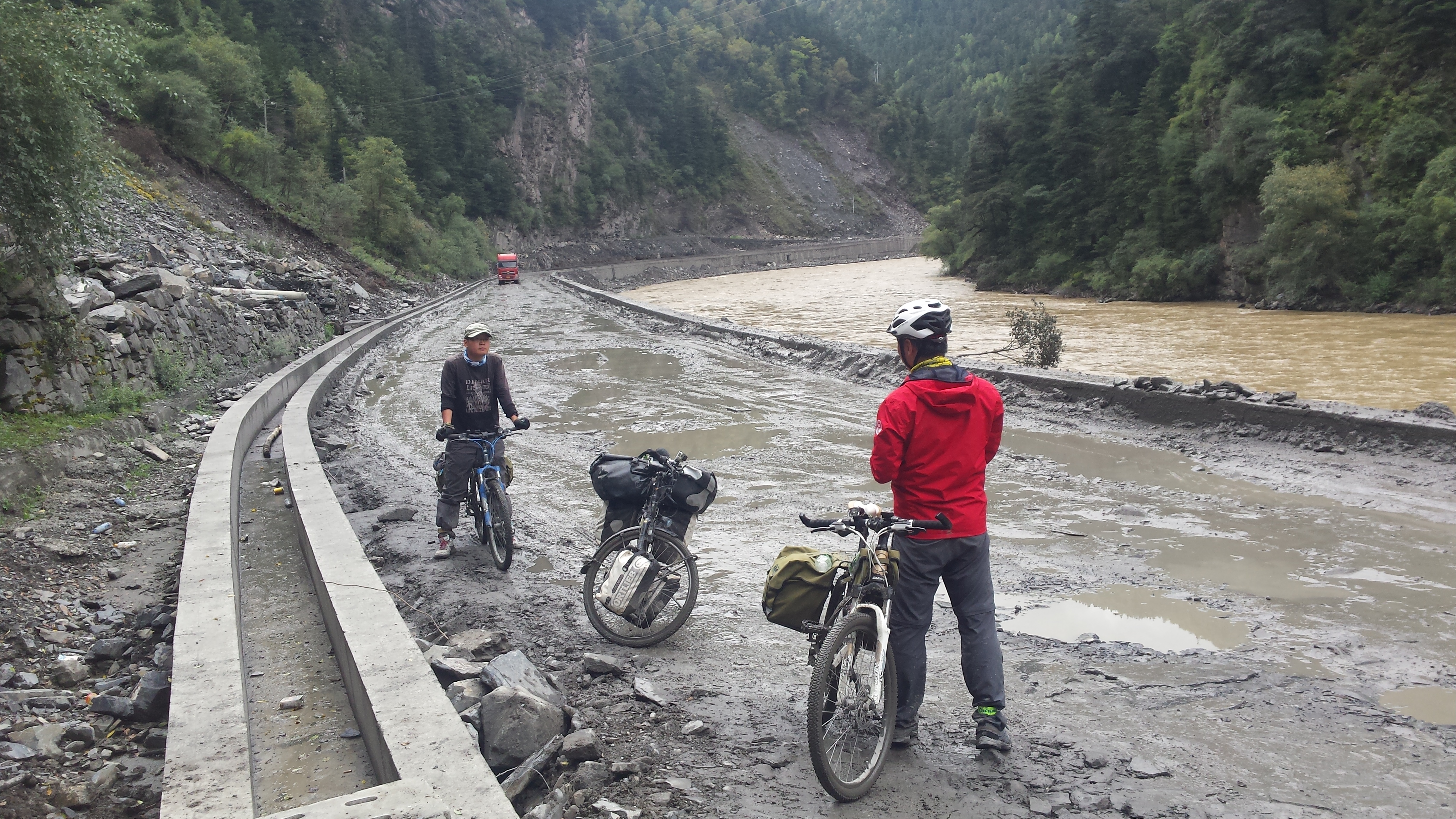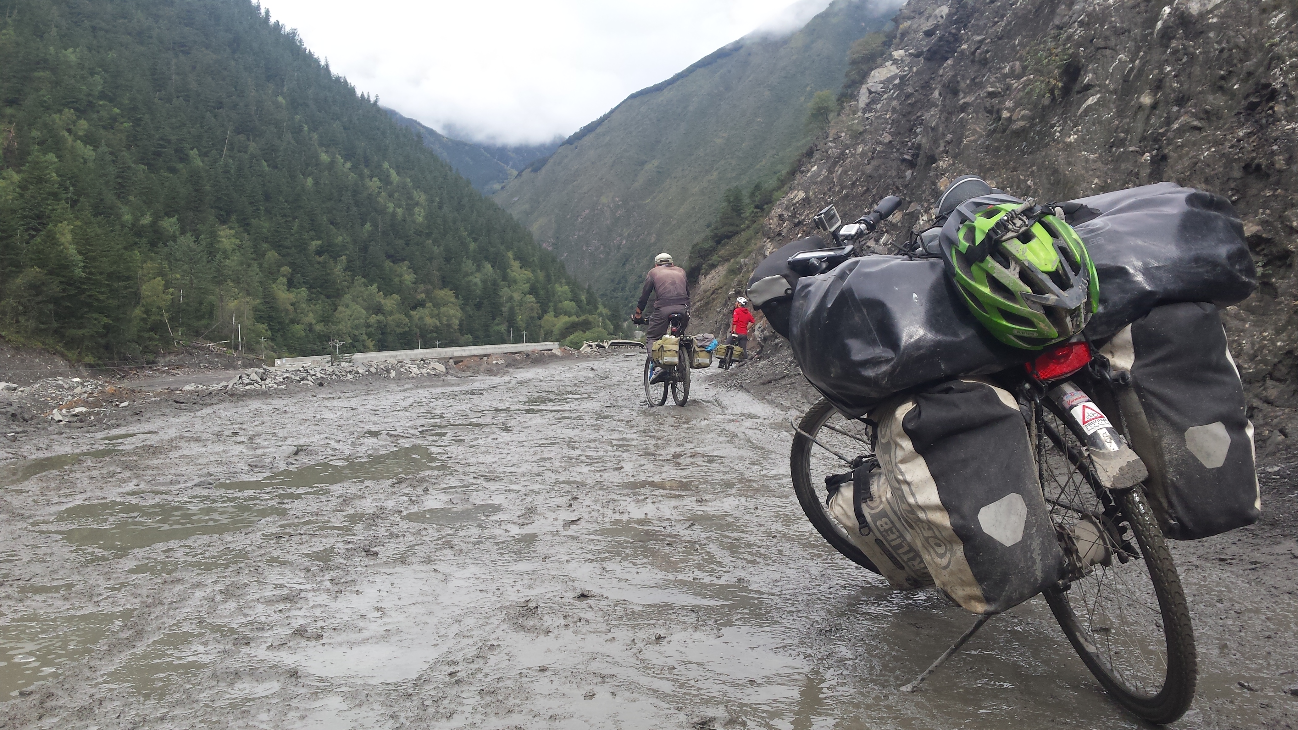 Exhausted. These roadworks are dreadful and consume all my conscience. 50km of relentless mudbaths, rock gardens, pools and trucks. No tranquillity. Any views obscured by mountains of rocks to be used in road construction. Oh. And I have diahorrea.