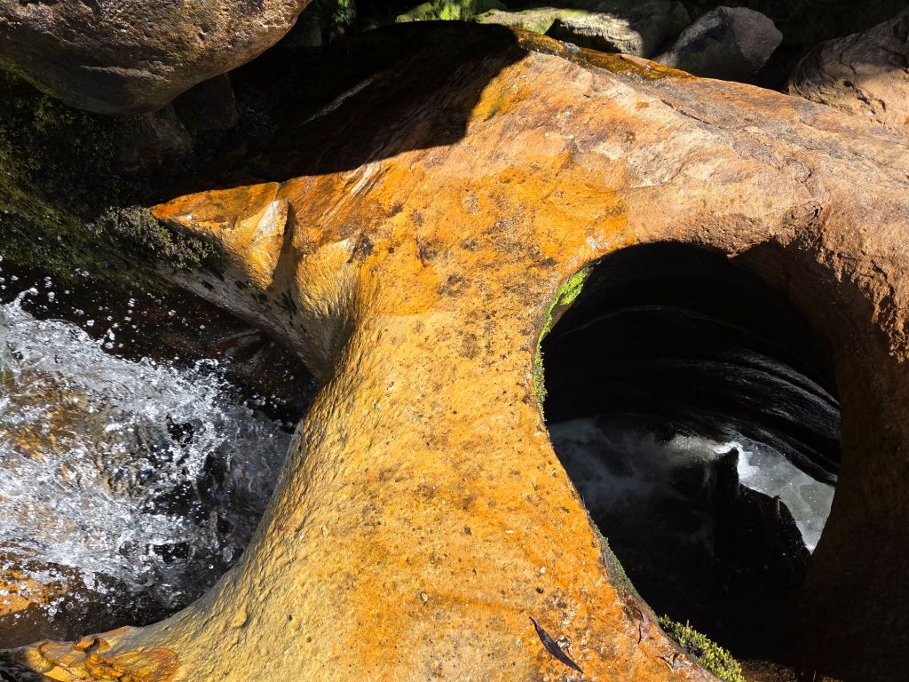 Before the falls, the canyon opened out. The layers of platforms were bathed in the late summer light. The water rushed along, plunging into holes, just to emerge at the next platform. I lay on the slab of rock and breathed in the view.