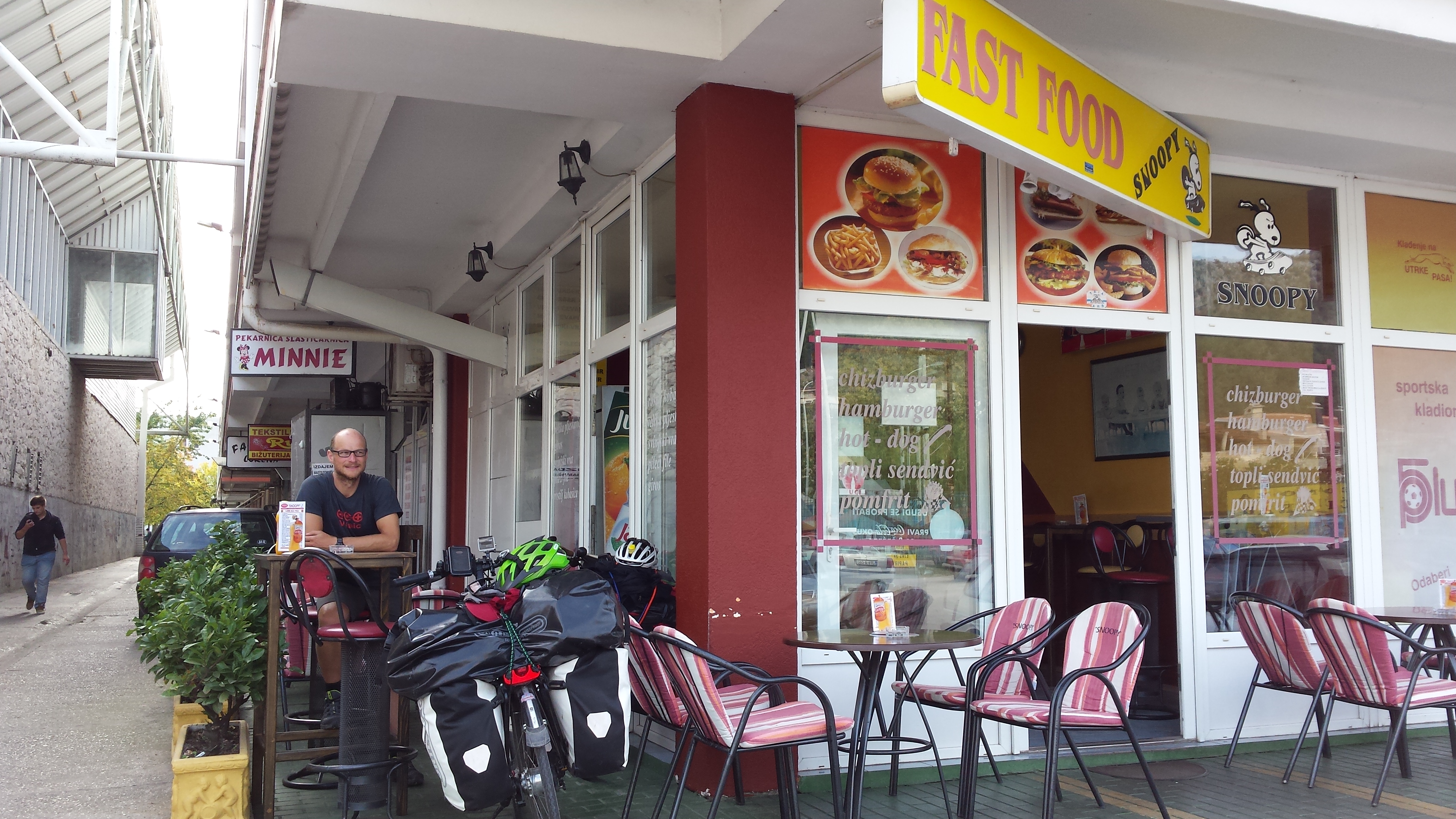 Our last day through Bosnia Herzegovina was on a Sunday (today), which is hunting day. We passed lots of cars that had pulled over, with people with guns and bright fluorescent jackets. Cycling along, we heard the distant barking of dogs (and remembered the canine blur that jumped out at us from the bushes yesterday), but discovered that these dogs were hunting dogs. They were tracking down wild boar.