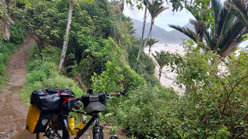 Leaky valve – change bike tube. Loose baggage rack – put in screws. Brake pads dead – use my one spare. Technical issues went through my mind today as I bumped along over the rocks in the rain.