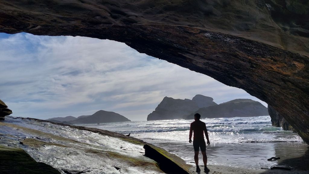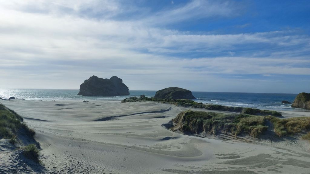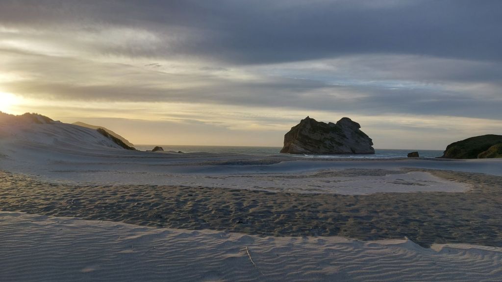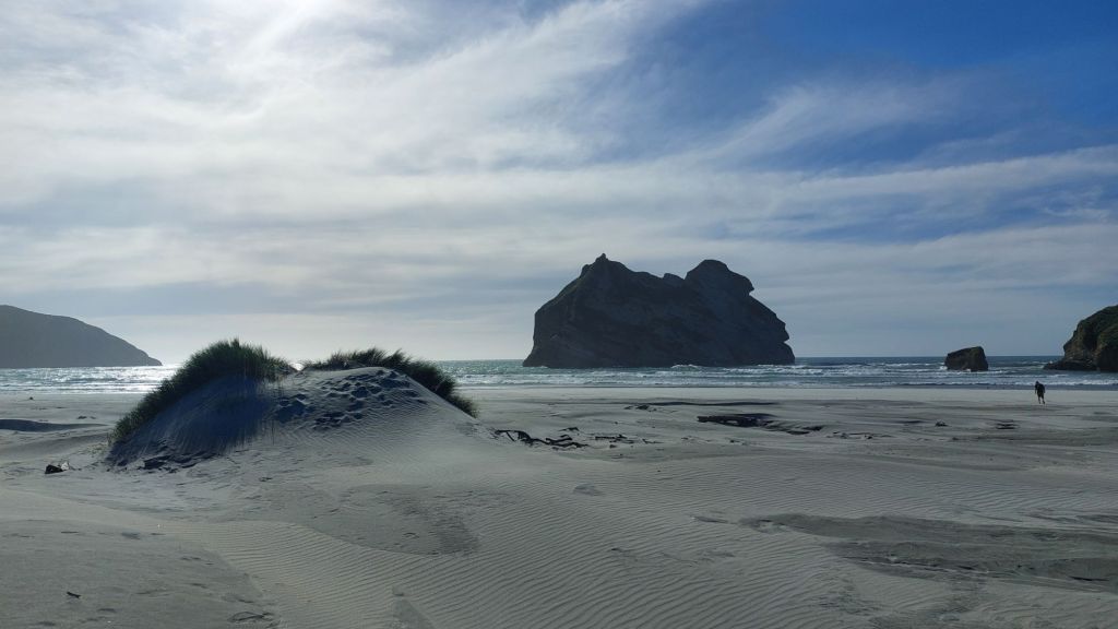 The northwest part of the South Island of New Zealand looks like a kiwi. I am staying just under the start of the beak – at the base of a 30km spit of sand. I had a busy day exploring it, the nearby cliff faces and the famous Wharariki Beach.