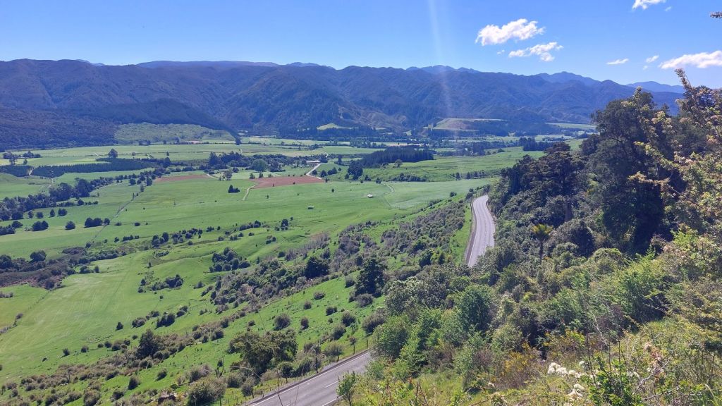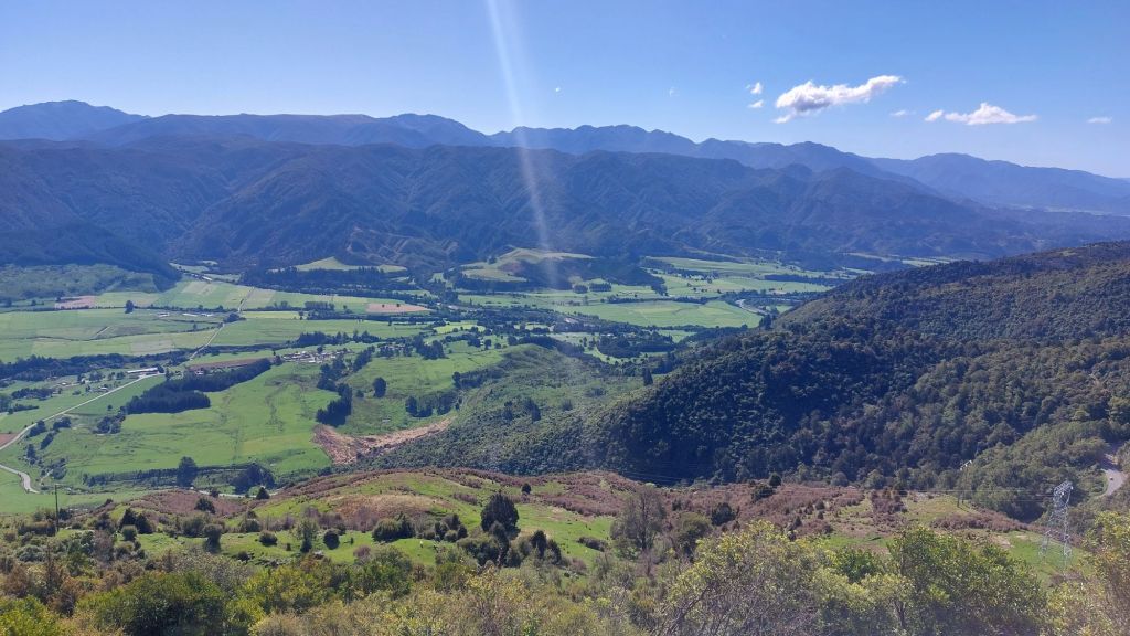 I followed the Great Taste Trail again up some country roads, stopping for an ice cream before climbing over a small saddle to change valleys to cycle to Tapawera. This is where I crossed my route on day 1, and where I met Jake – who was my host last night.