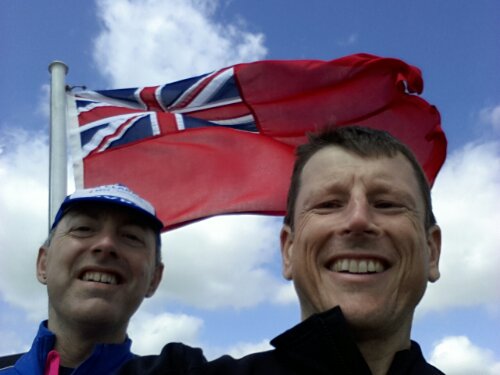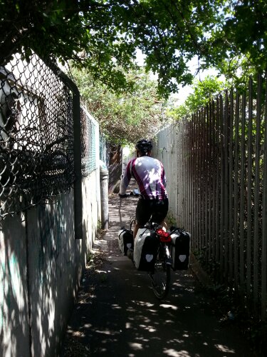 On reaching the top of the white cliffs of Dover, we saw a boat coming in. That could be my boat. Taking the shortcut down to the harbour (carrying our bikes) I made it to board that same boat.