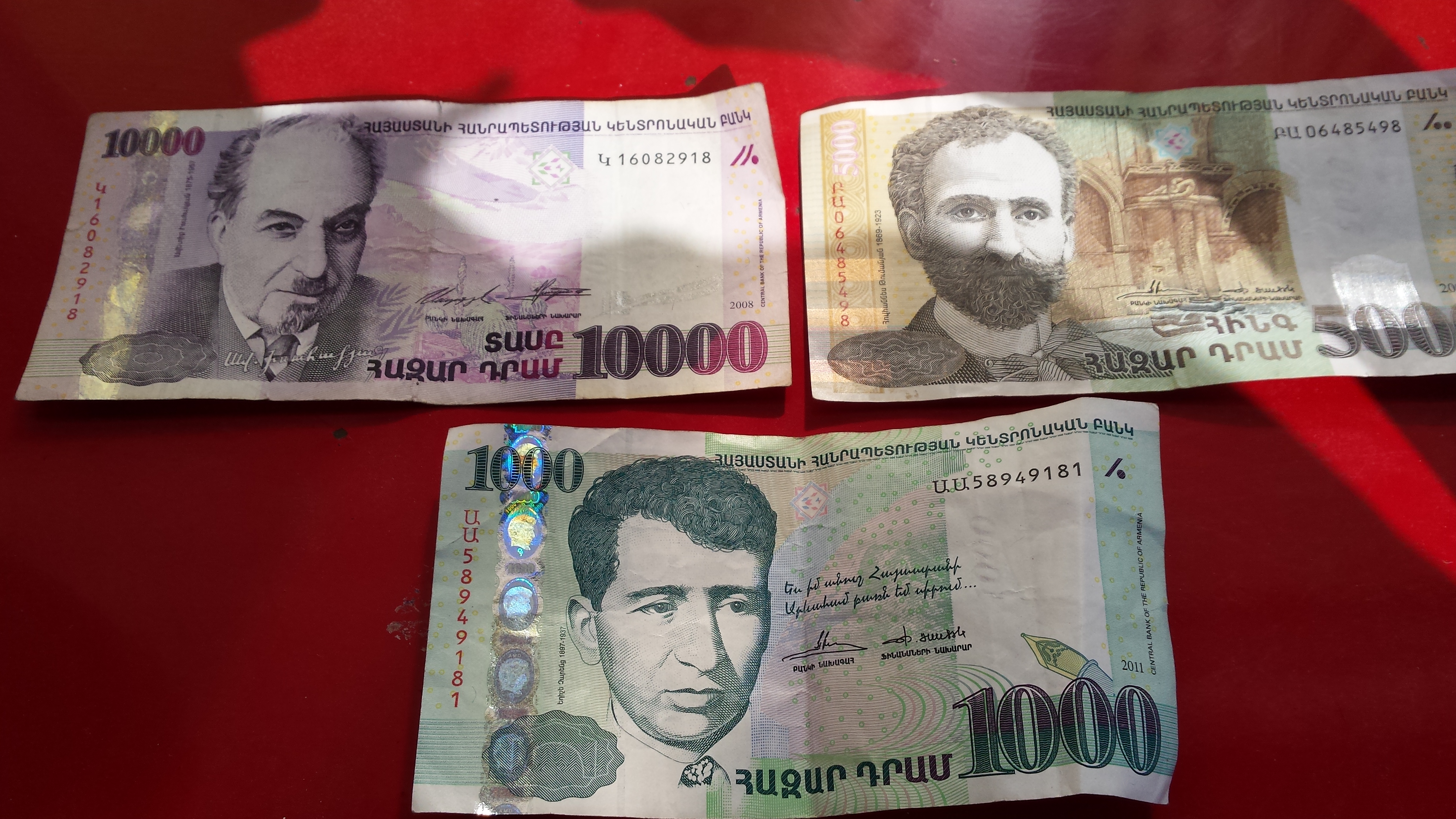 Armenia on a sunny day. We were welcomed by the border guards with their impressive tall green hats. We collected some drams (the currency) and were on our way, following the border river.