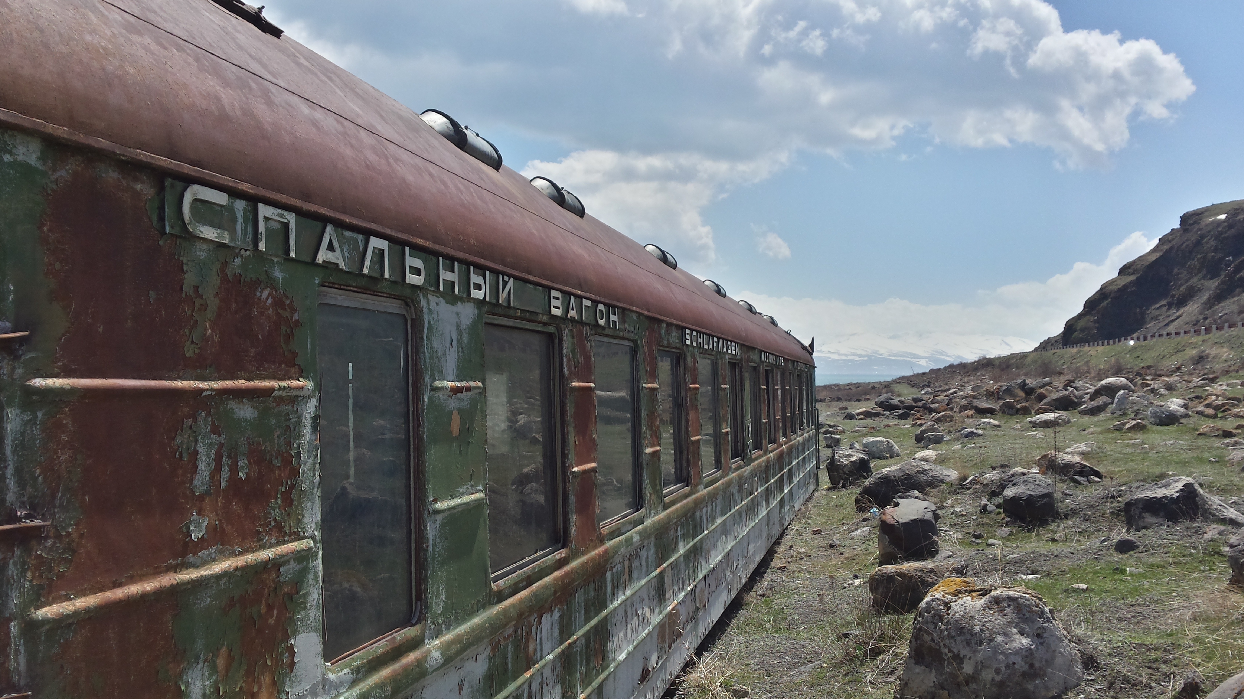 Lake Sevan has an arctic feel. With the sun out, we had amazing views of the lake, the barren land, the snow-capped mountains and rusted paraphernalia. Today we had sun, gale-force wind (side and headwind), rain, snow, hail, thunder and lightening. And a 1300m drop into the most amazing valley. Cool!