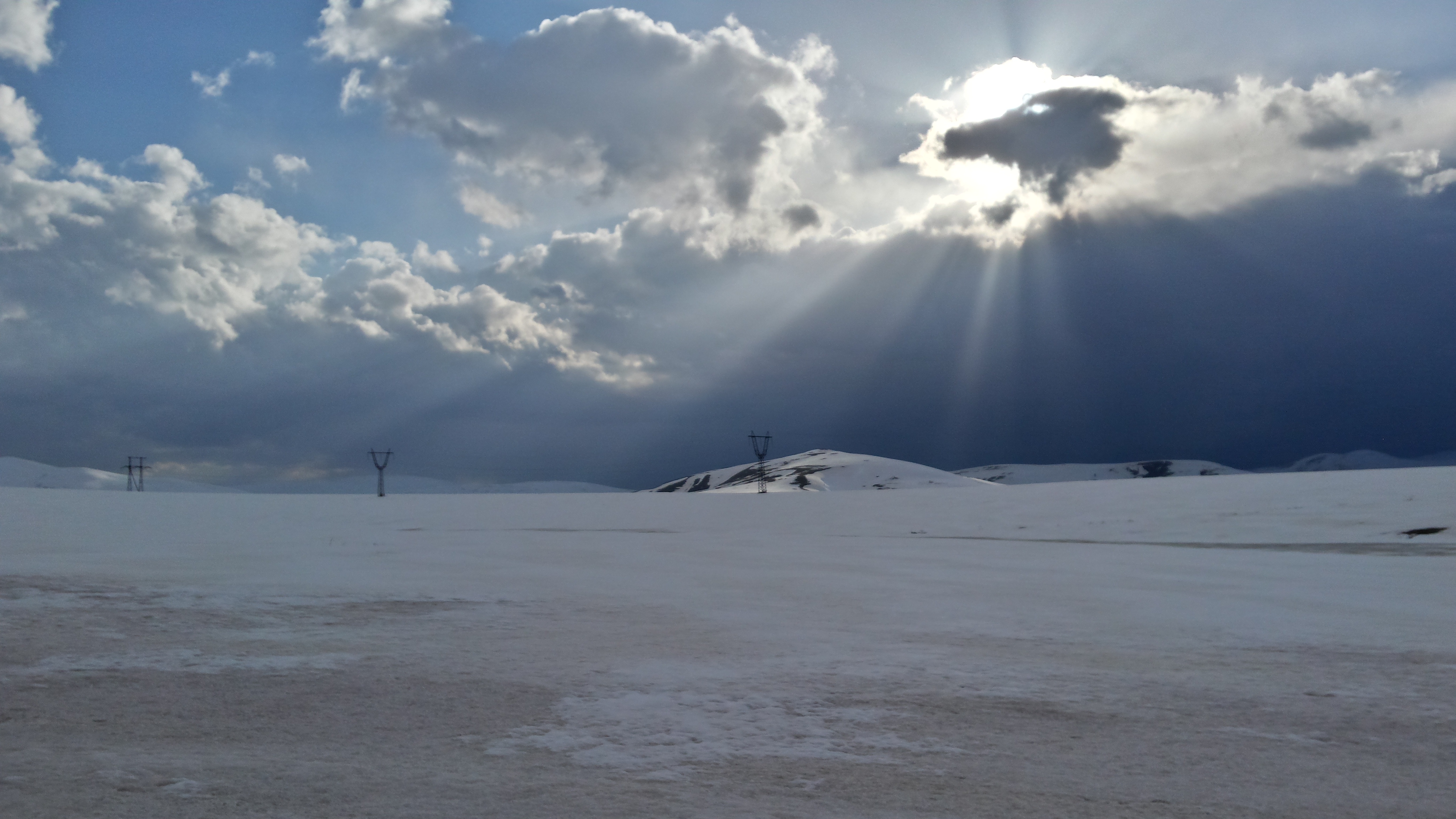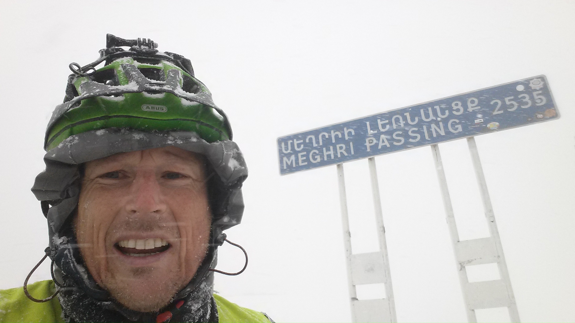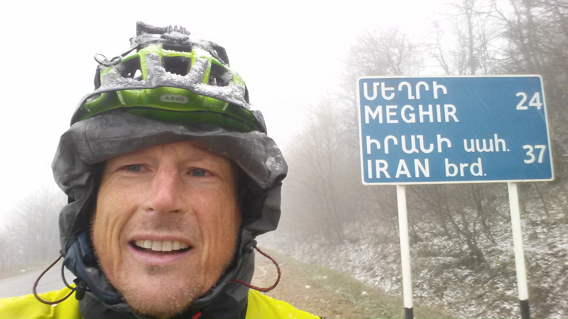 Proud. We are looking at the mountains of Iran, and we have cycled here over the Caucasus. Two years ago this was a dream. Now it is reality, and, cycling up a 12% slope in the snow and hail I laughed. I am here. Now.