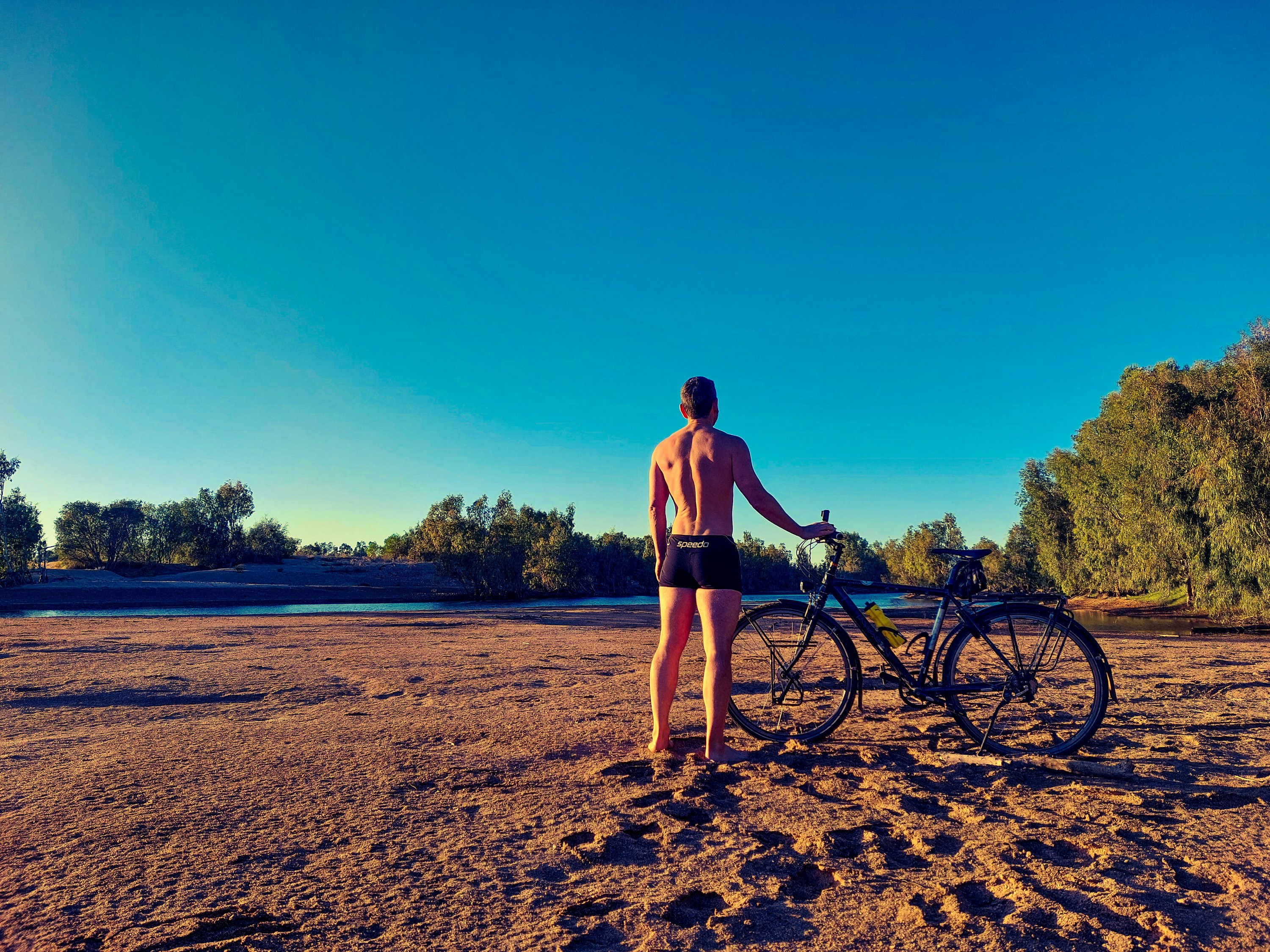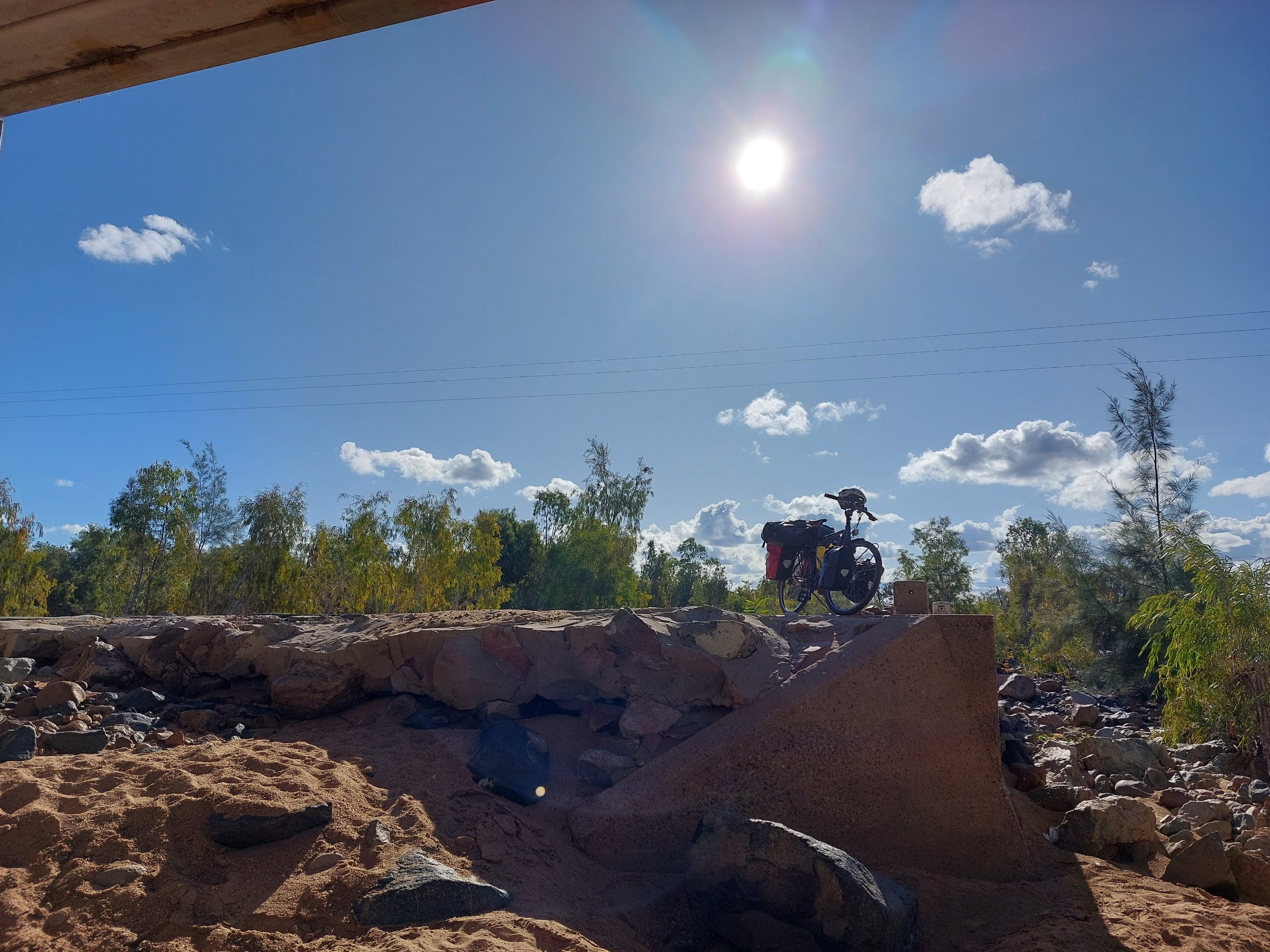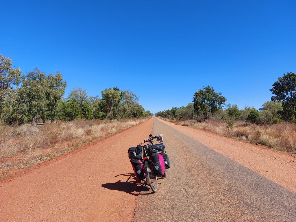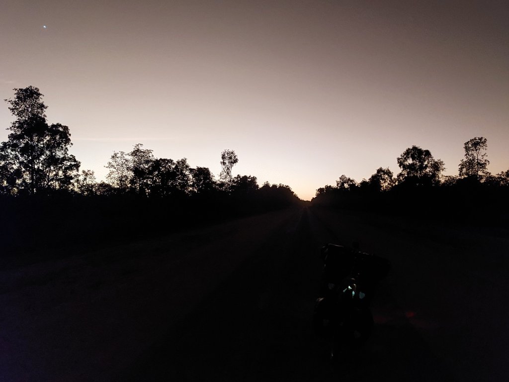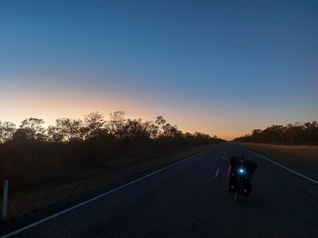 Going to bed at 7.30pm means you get up at 3.30am and start riding at 5. It’s beautiful gliding along the outback road at night under the starry heavens. Slowly the horizon turns a firey orange, the birds explode in a chorus, and the day begins.