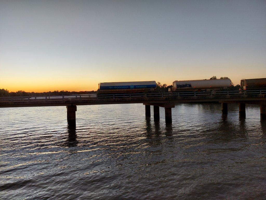 Out of Normanton is a pedestrian bridge over the Norman River. Its quite an impressive waterway. I spent an hour looking for crocs and watching the sky turn amazing colours.