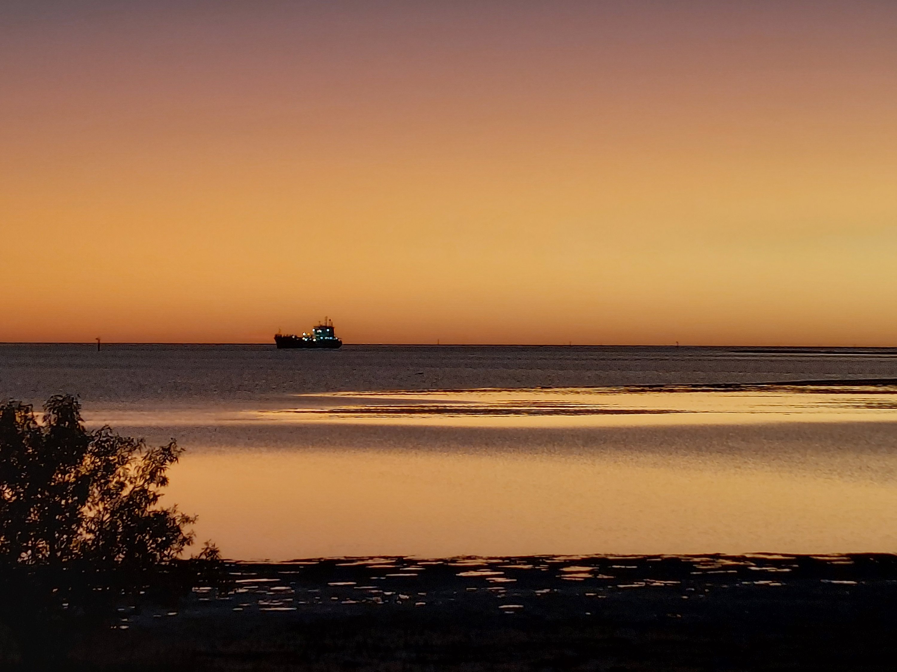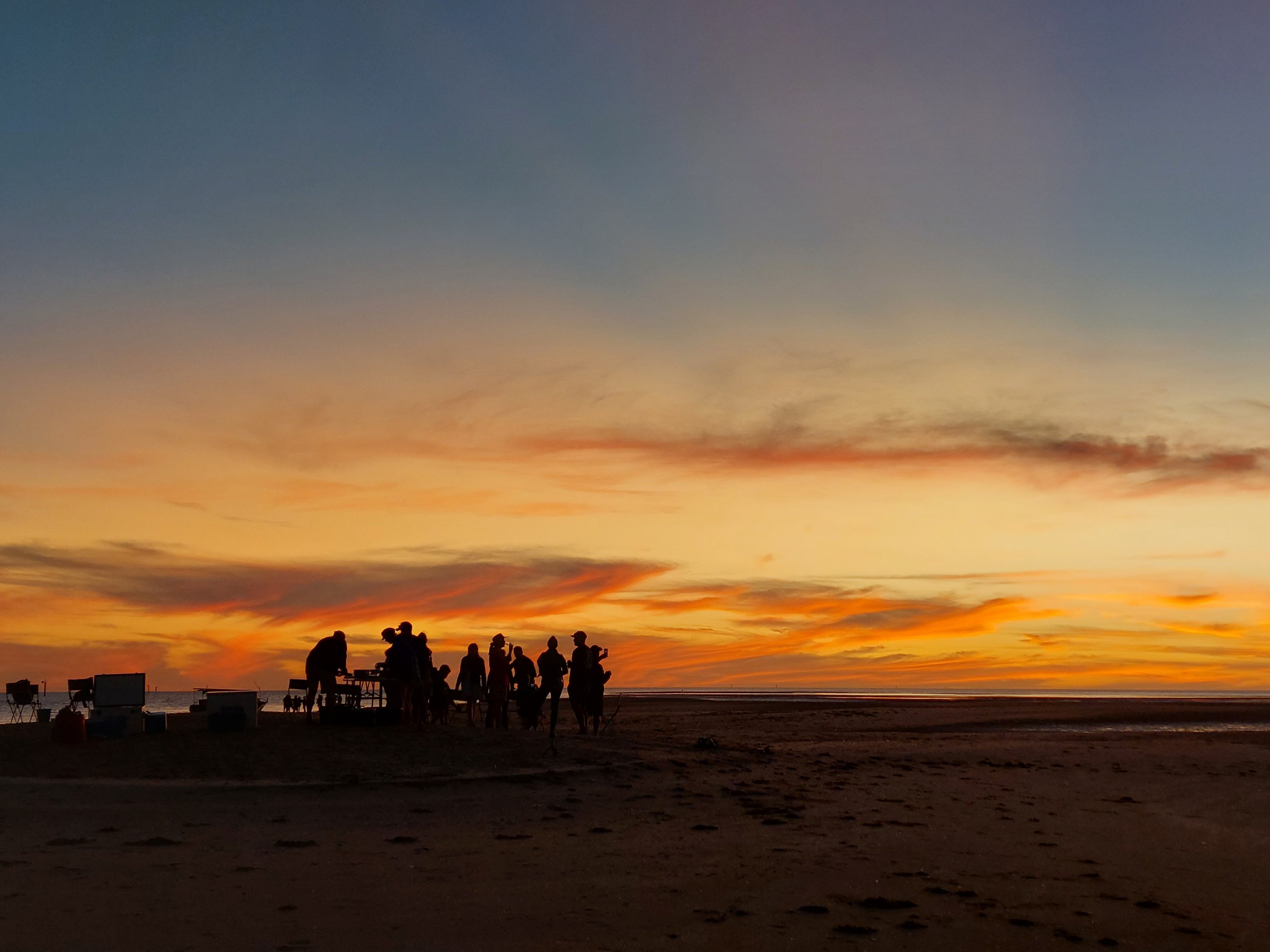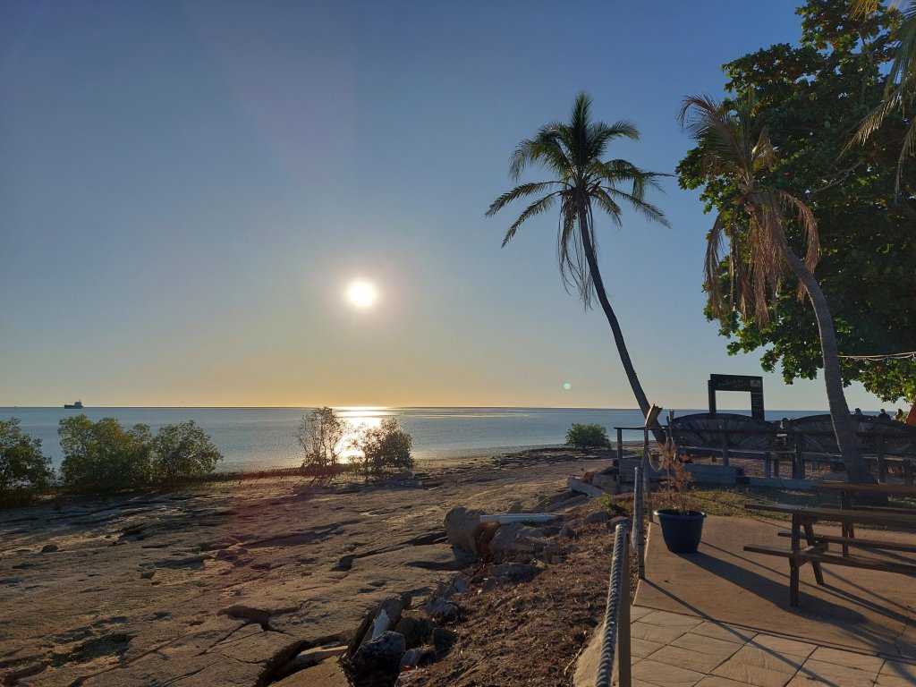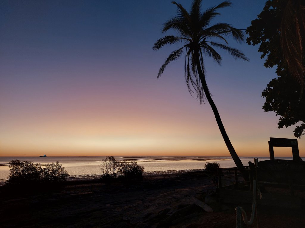 It’s the end of the road. The road from Cairns has led here, and has now stopped. The land ends at this remote ‘Outback by the Sea’ town. People sip their drinks under the palm trees watching the sun turn to orange and then red over the sea, the mangroves and the emerging sand bars. The end of the world vibe. I love it.