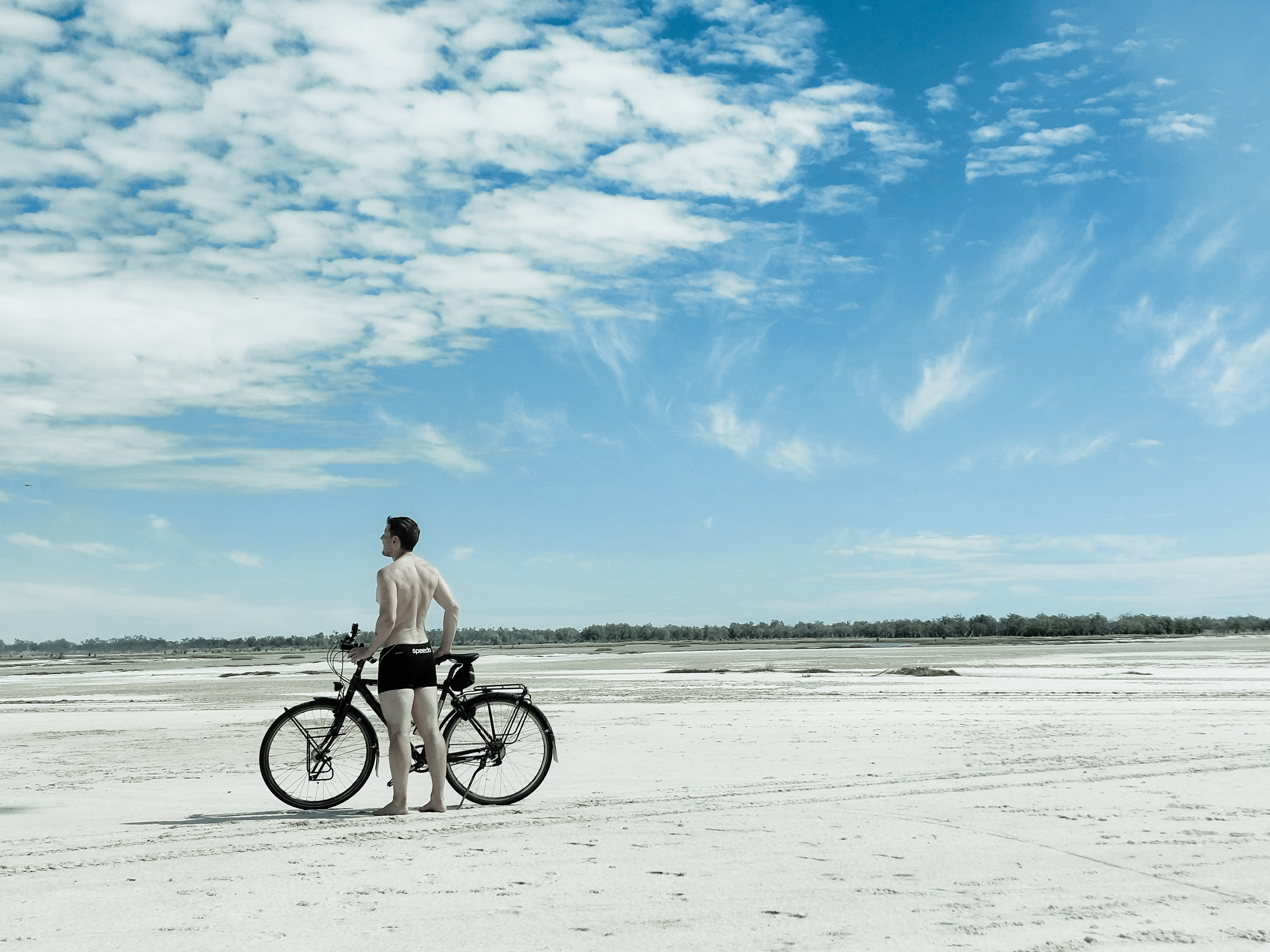 The road here saw the vegetation slowly disappear as I pedalled through low grasslands and then salt pans.