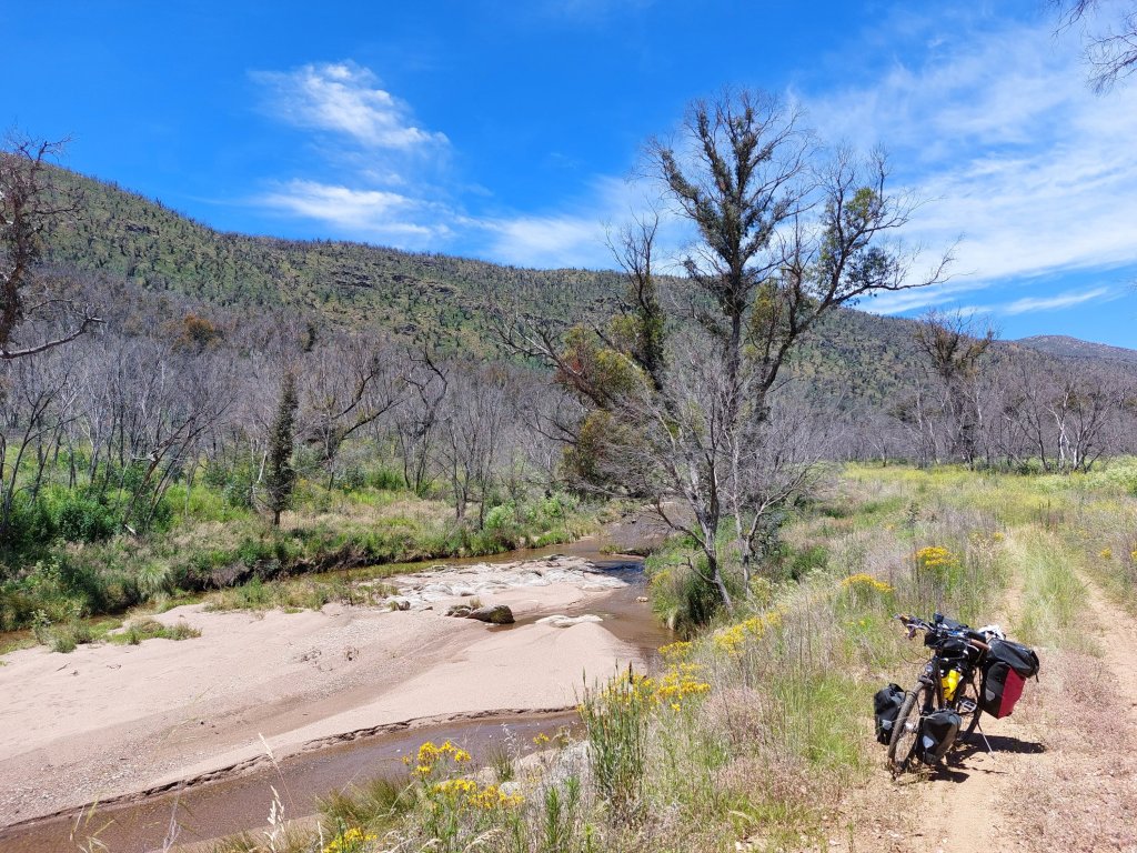 The stars were extinguished, one by one, as the sky moved through shades of deep blue and then orange. Then the sun burst through as I watched at Waterhole Hut. The sunrise is the theme of my little video – cycling through Namadgi National Park.