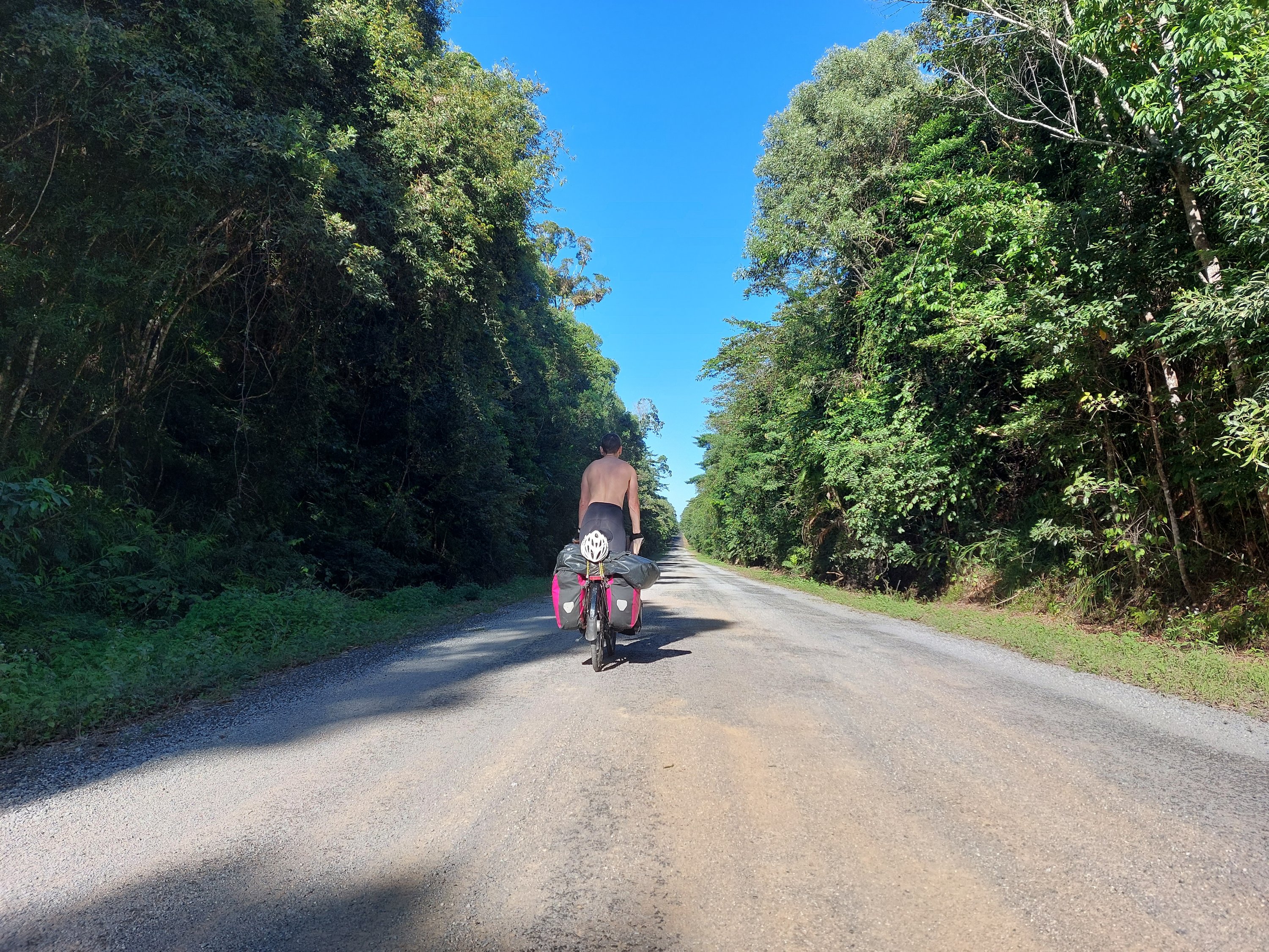 Today was snake day. I passed a snake lying on the road, warming itself in the sun. Another slithered away from the side as I passed. From then on I heard rustles of leaves everywhere. It’s good having snakes around. It means the road is not busy. Quaid Road from the coast up to the tablelands was closed to traffic, and I was the only one there, cycling through the forest.
