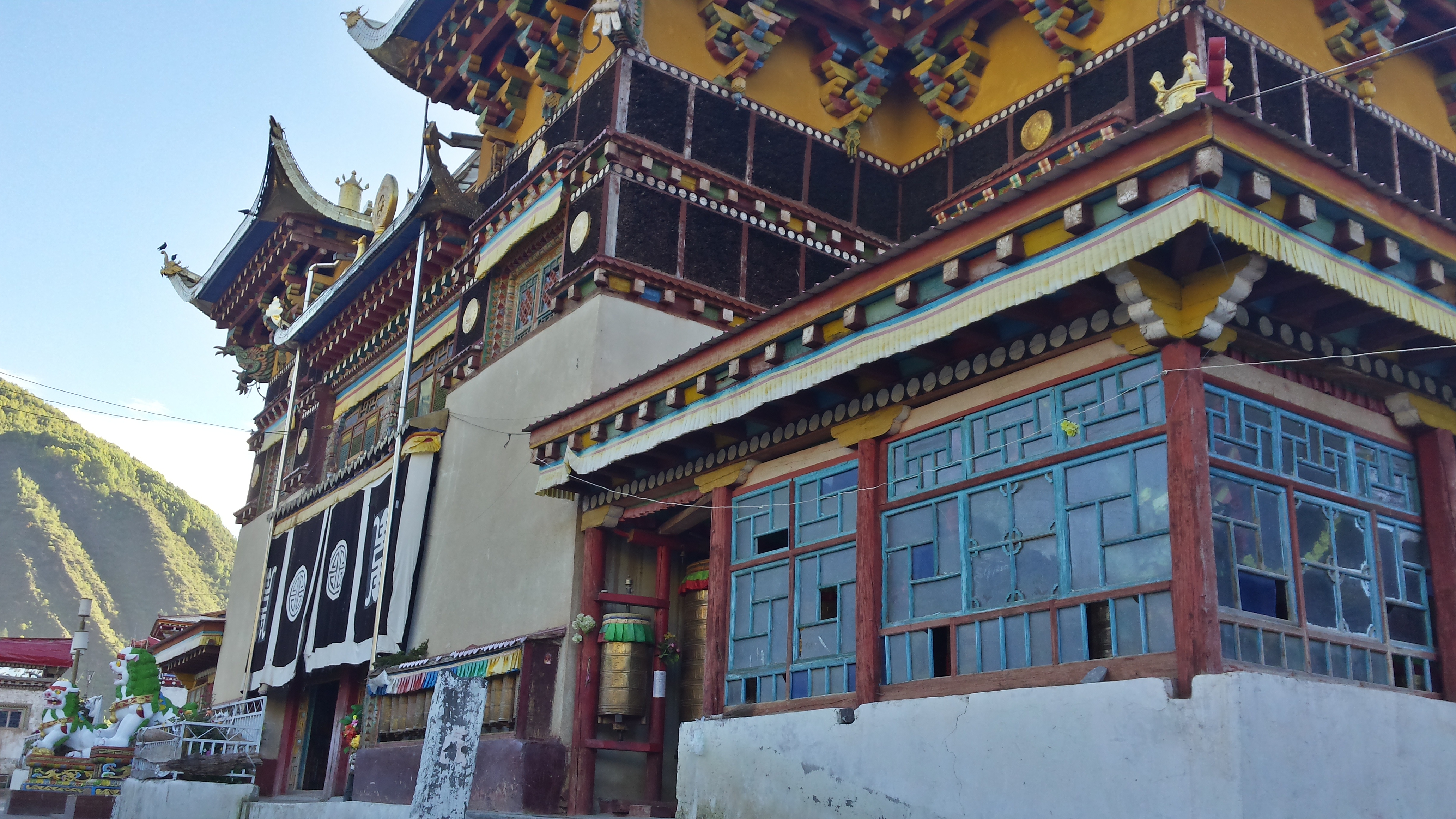 Yak butter. The valley smells of yak butter. From every village, from every temple. I pass monks entering the temples – the yak-butter centres. Monks pass me buzzing along on their motor scooters while looking at their phone. I watch the monks circle around the temple perched on the top of the hill in Xinlong. Yak butter.
