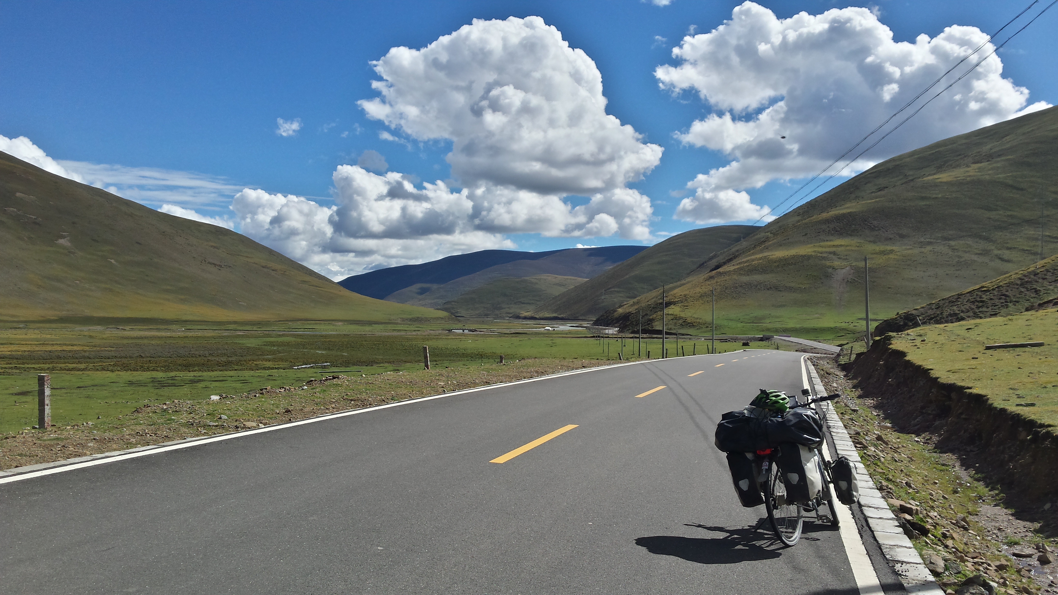 Today was about scaling the last pass before Ganzi. I did it in beautiful weather conditions – every minute it changed from bright sun to the darkest clouds. Oh, and with a constant headwind.