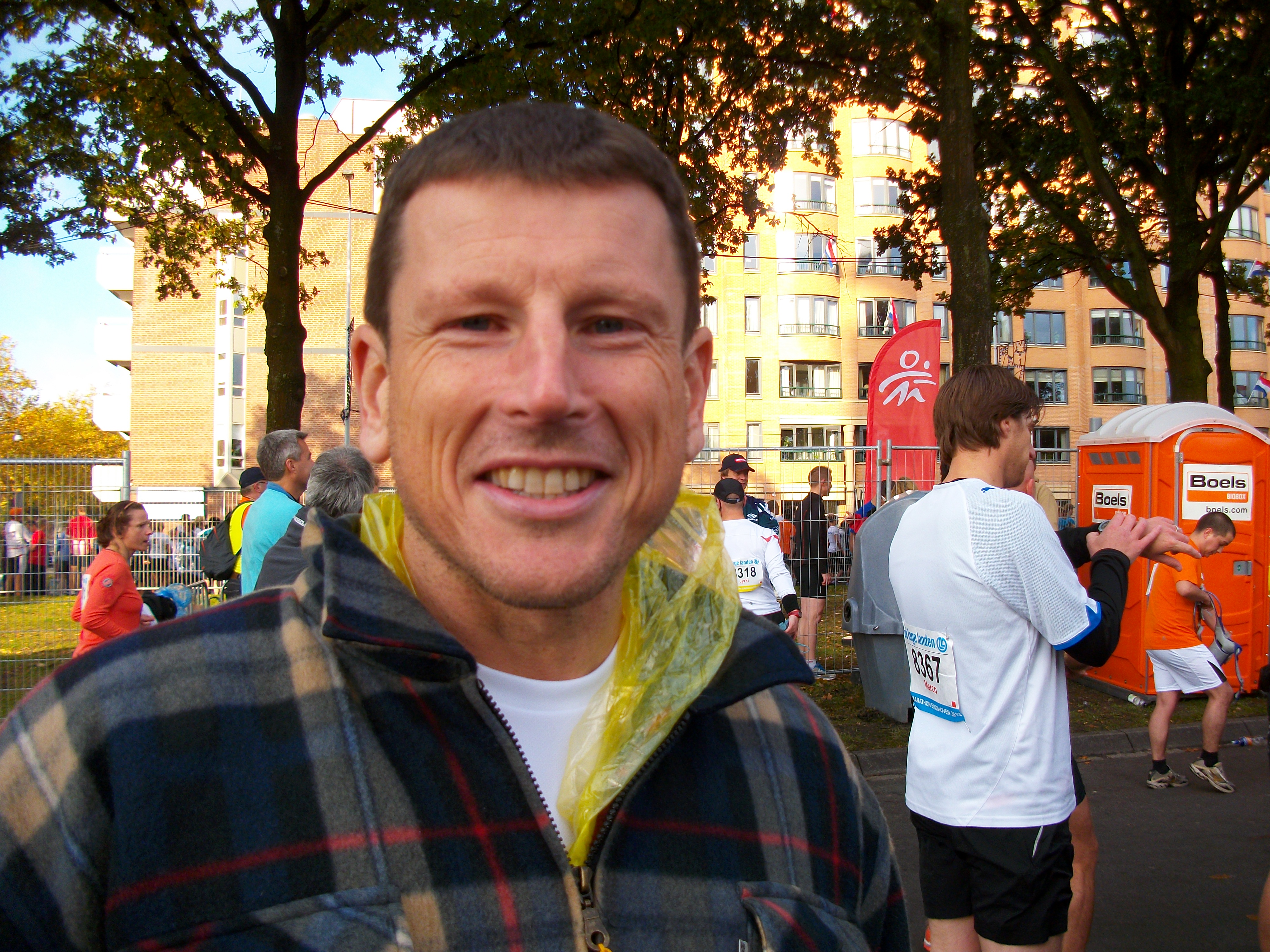 I enrolled for the Eindhoven marathon at the start of the year when it was far away on a distant horizon. My training was a bit patchy. I went on lots of very long runs on the weekends (between 25 and 37km), but didn’t do enough basis training during the week. I hardly ran at all in the last two weeks, pausing to let some back pain get better. I had a bit of a stomach bug for the last few days, too. So: for the first time I went to run in the marathon without expecting to run under 4 hours. I would run at the speed that felt right. I was prepared to stop if it was clear that the stomach bug hadn’t gone. This lack of self-imposed stress meant that I slept well. The weather was fantastic for a marathon: 13C and cloudy. The stage was set.