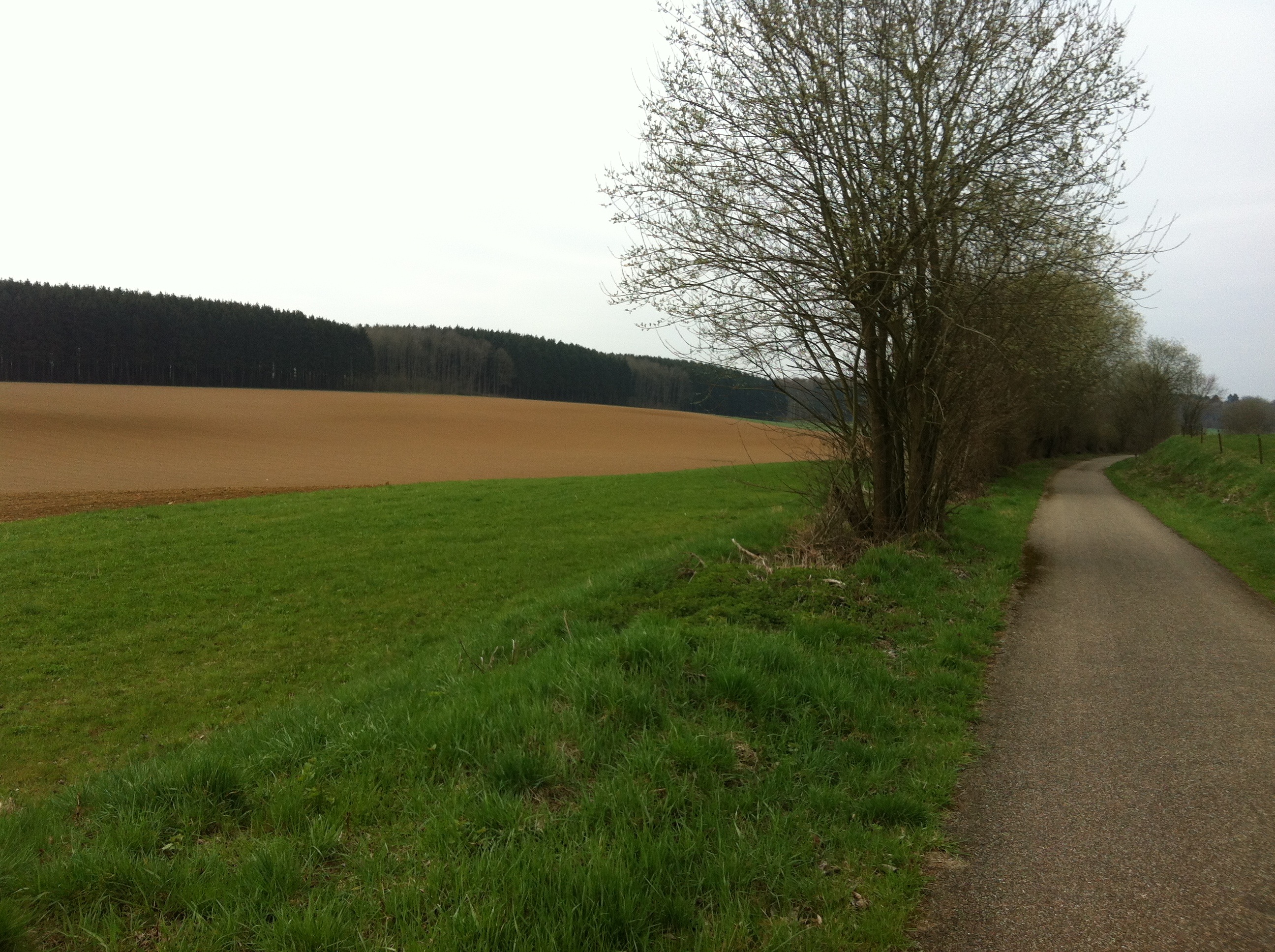 In the early and fresh (i.e. cold) Saturday morning hours, I passed through fields, along canals and through forests, almost entirely on cycle paths far away from cars and other disturbances. The birds were chirping – something I have missed in the long colder winter that is now ending. Leaving with the conviction of warm weather (which was predicted for Sunday), it took time before I decided that, yes, may hands really were freezing off, and I really should wear my toasty warm gloves that I had bought for the North Cape. The fields were ploughed, the trees still bare, and waiting in great expectation for the burst of green.