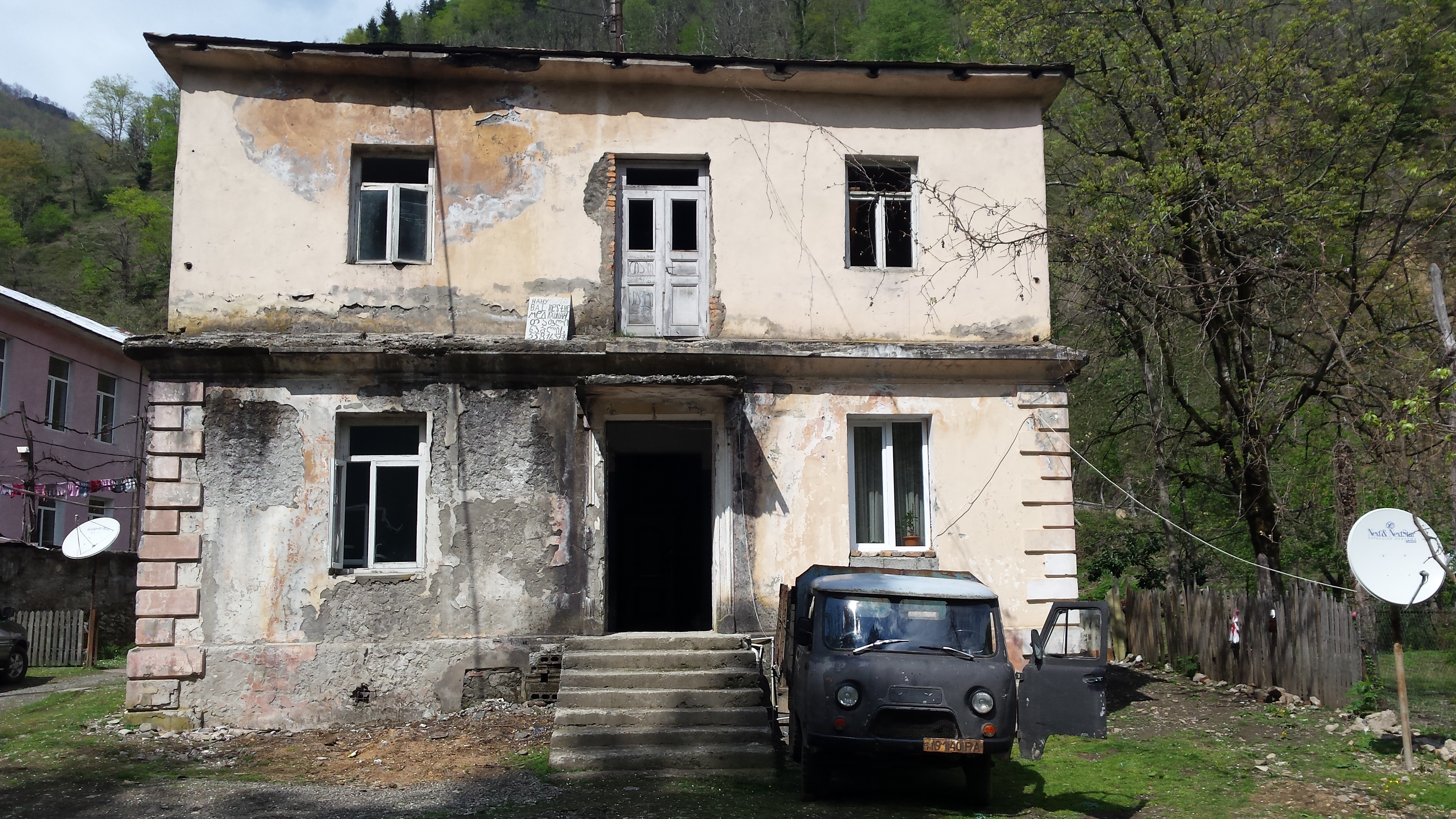 On the 3rd visit from the soldiers, the boss told us we could not camp. We were near the Georgian border. (We weren’t.) Our neighbours spoke to the soldier – could we camp in their garden? No, said the soldier. So, we are now in their second house that they are renovating – up on the hill above the village. What lovely people!