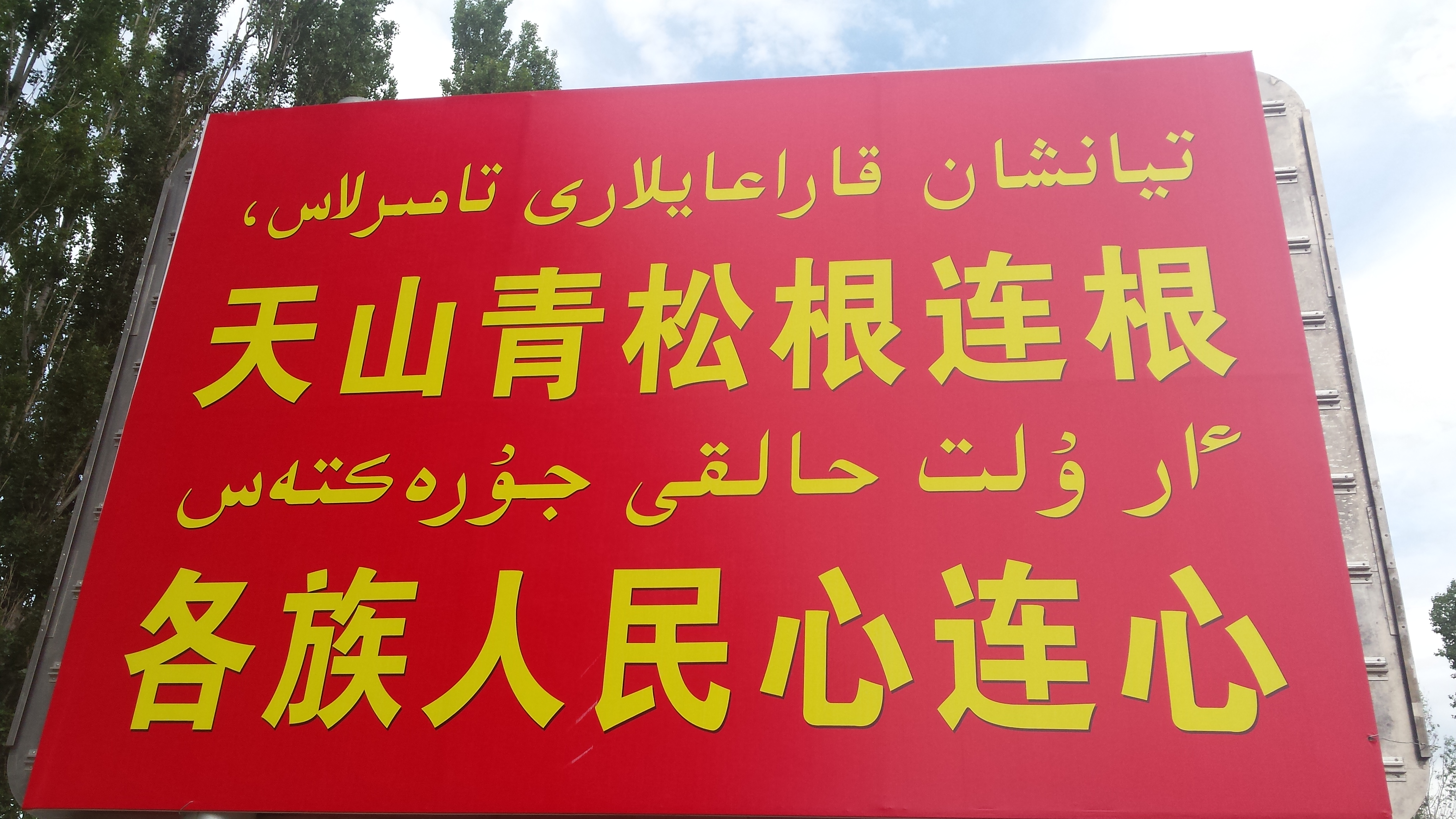 Every kilometre or so I pass by a bright red sign with yellow script. I had a bash at translating one – it was all about unity and solidarity of the people. The signs were about as frequent as the two heads in Iran, and the president in Tajikistan. They were everywhere.
