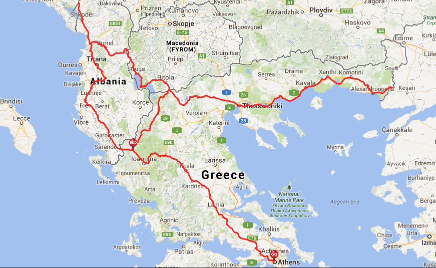 But first into Greece. Our passports were thoroughly checked. I was asked where the stamp from Blato was from. I couldn’t remember. James started to say Macedon…, saw the border guard’s ashen face, and then bit is tongue. FYROM – The Former Yugoslavian Republic of Macedonia. We got our passports back.