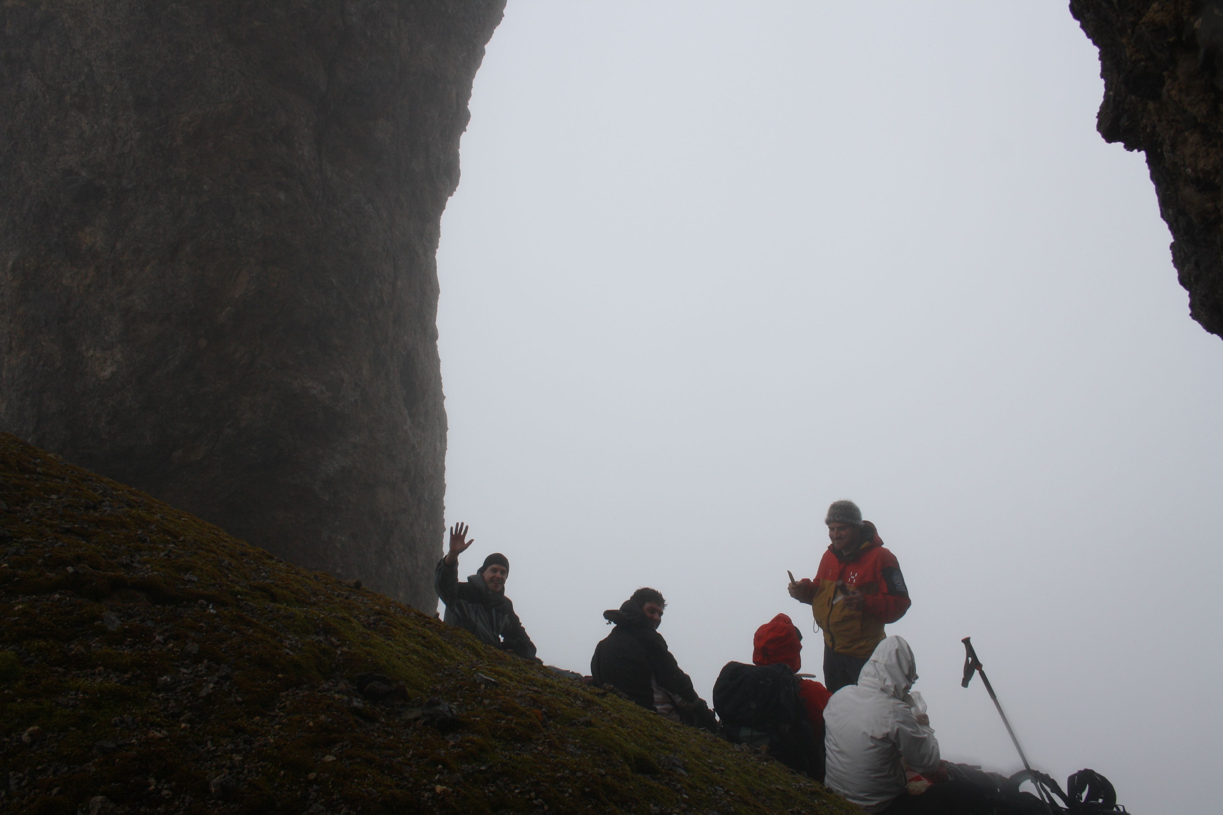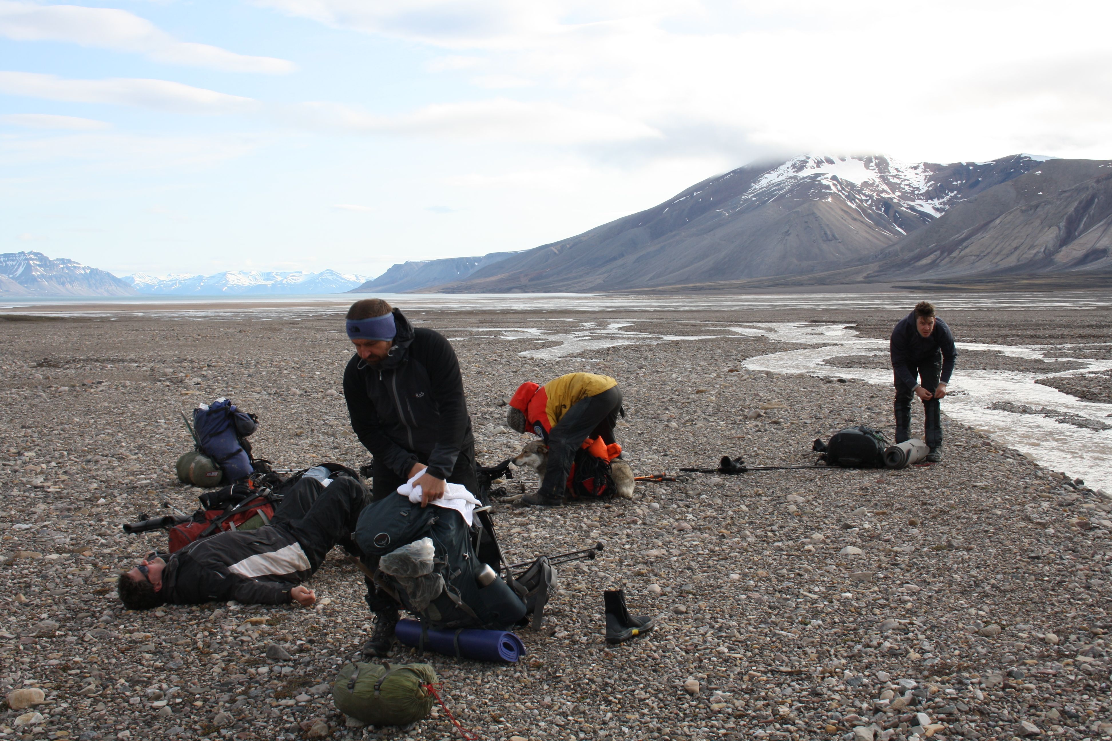 Gale. Collapsed tents destroyed by the wind. Two people holding the tent down. Thermarest whipped away like a leaf. Consolidation. Damaged main tent deconstruction. Damaged Lisa tent deconstruction. Massive boulder search to pin down two remaining tents. Tent support strings pulled tight. Zips completely fastened. Dinner in our tent. Solitary and windy bear watch. What a day!