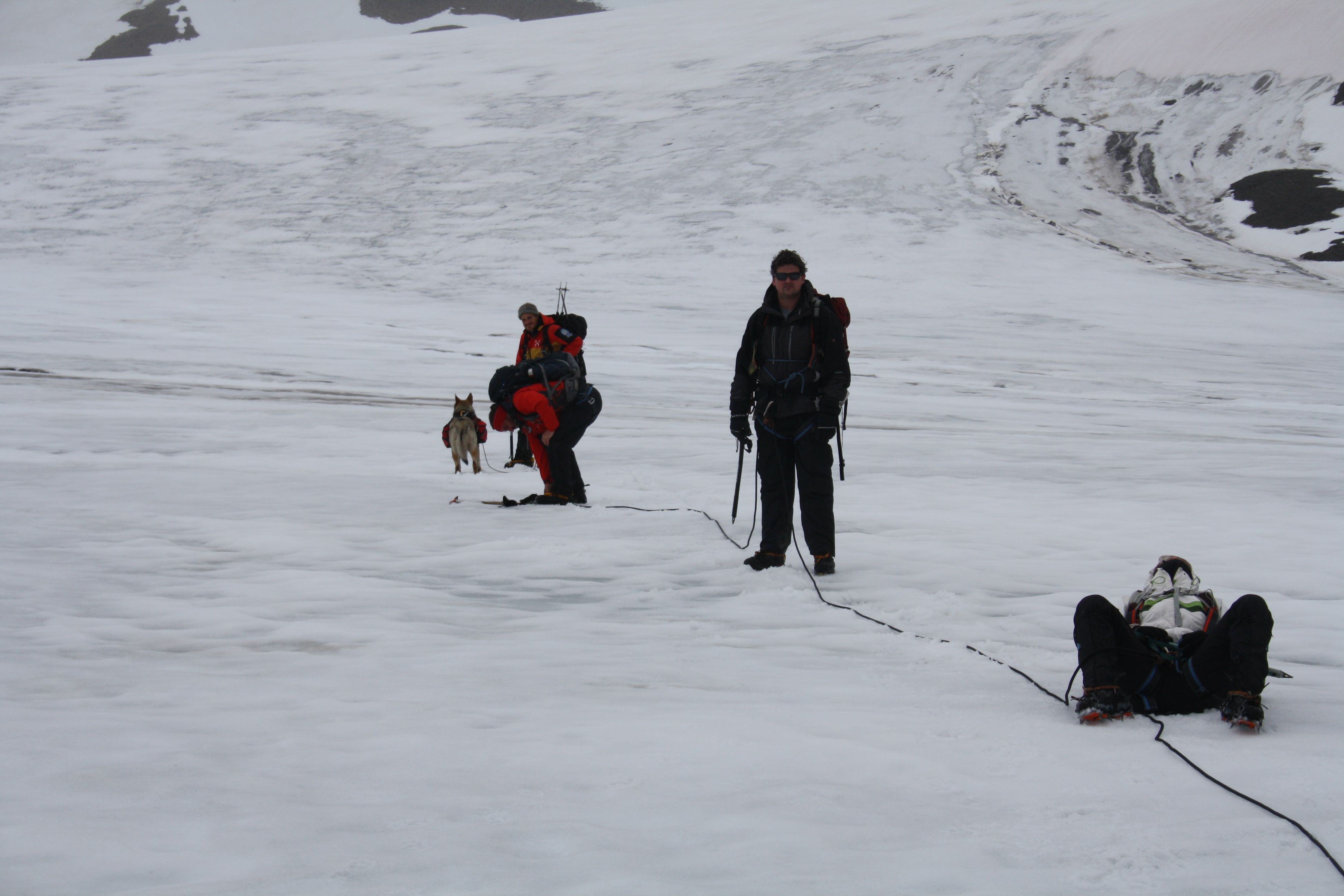 On the glacier we are tethered together. We are now masters at tying a variety of knots fastening our harnesses, and connecting ourselves to the rope. This rope is our lifeline if we fall into a crevice. Once fastened, we must keep the line taught. This means we all walk 8 metres from the person in front, and 8 metres from the person behind. It also means that everyone needs to walk at the same speed. This not easy. A sludgy patch is harder to walk on than a hard, icy patch (as we are wearing crampons). Jumping over a minor steam on the glacier needs preparing the footing before a leap. Sometimes the rope was a concertina.
