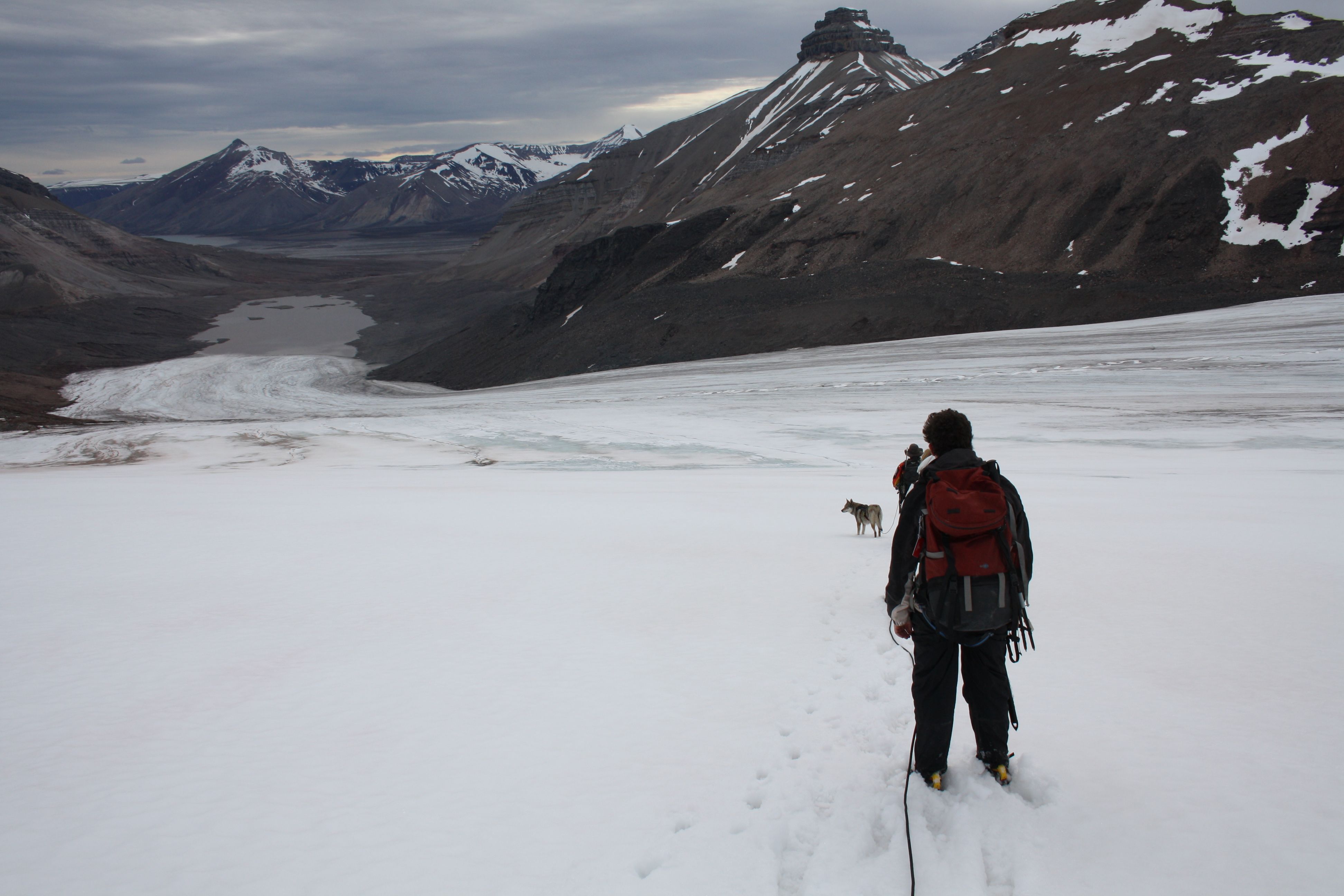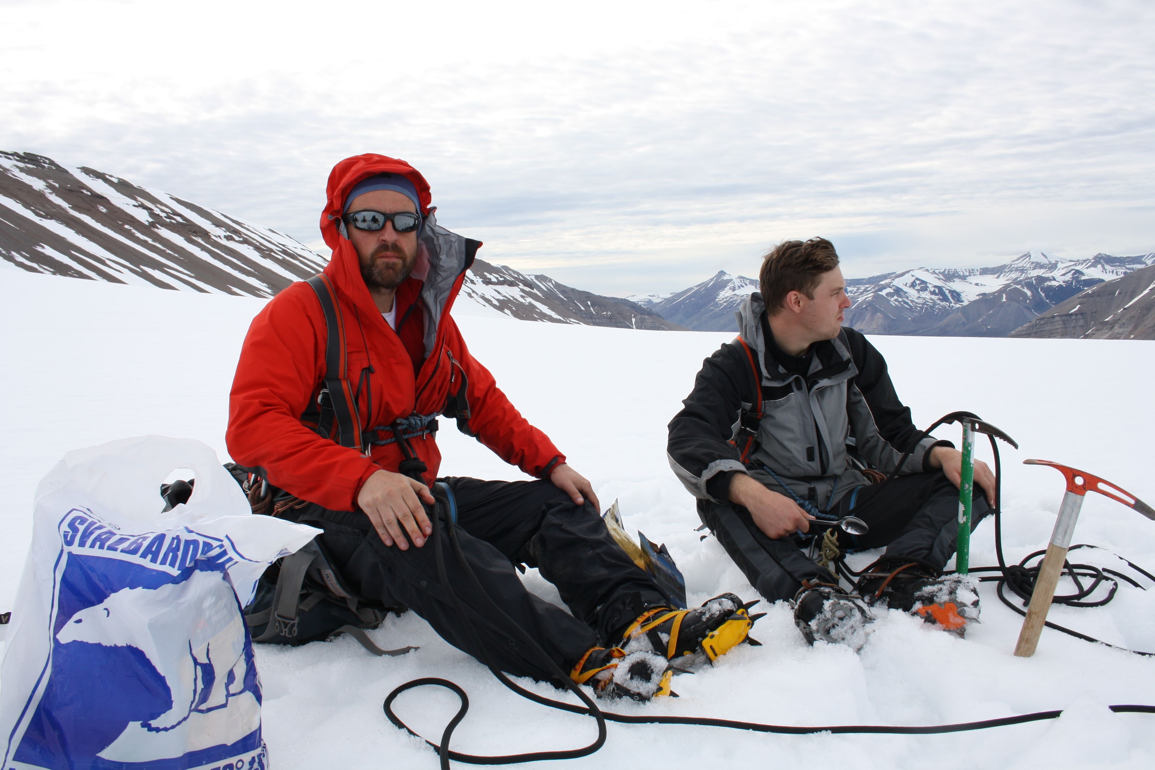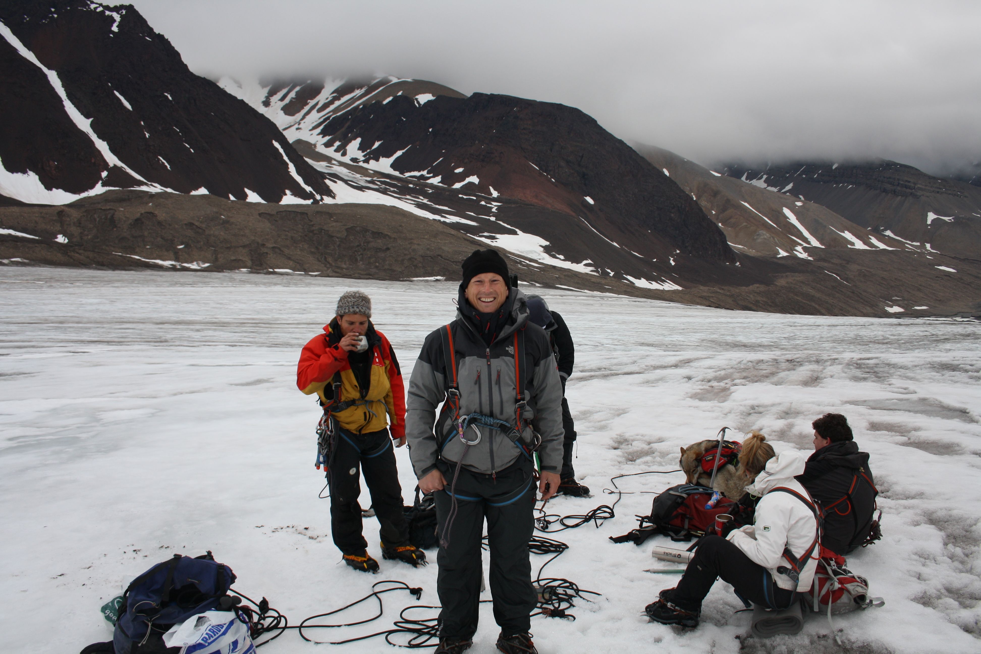 Crampons, harness, ice axe. Ice, snow, water, slush, mud, sinking sands, mossy bog, bouldery slushy bog, moraine, glacial river delta. Amazing glacial vista. Ice wasteland panorama. Desperate ice toilet rush by Steve. Lunch on the ice. Home stretch on the road.
