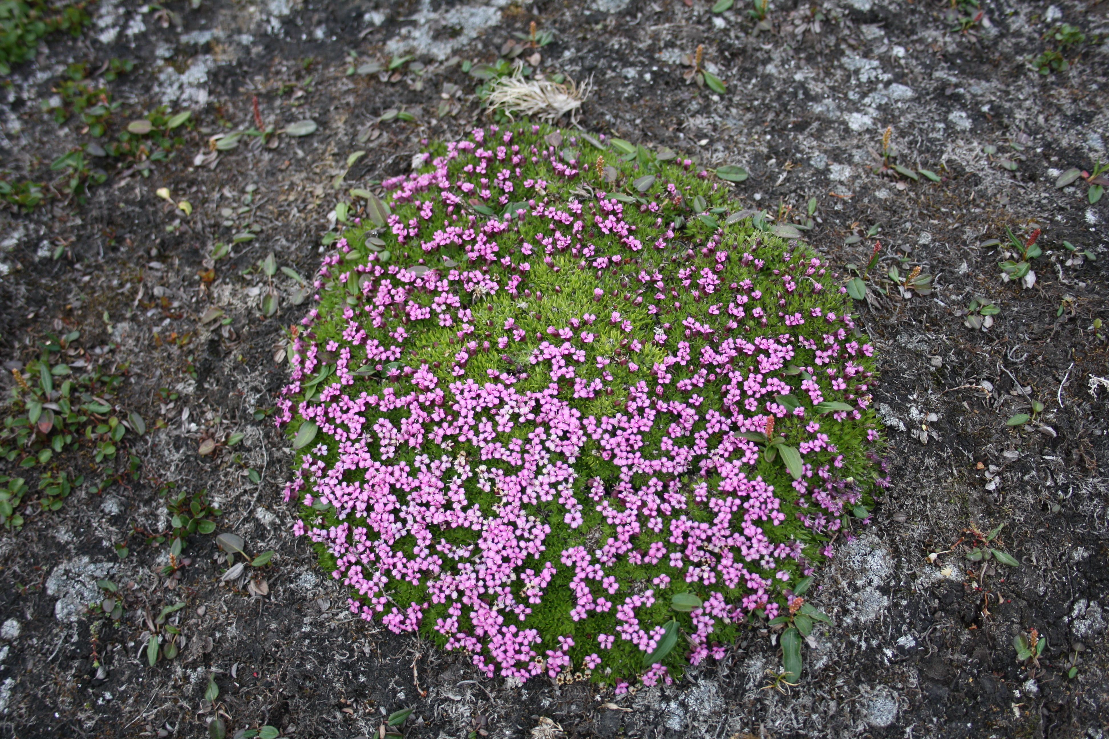 The beautiful arctic compass. A tuft of green, and purple flowers. They are more dense on the southern side of the tuft. Fascinating. The arctic.