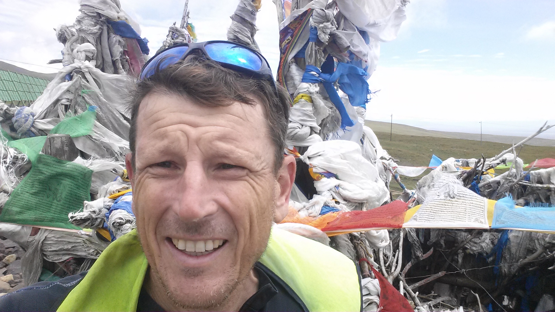 A day of contrasts. Frost on the tent at 3300m, and the midday heat having lunch at 1800m. A smooth paved road descending 1500m from the heavens, and a bumpy, rocky, sandy road, plied by big trucks ascending back into the heavens. Failure to pass the police checkpoint. I said I wanted to go to Urumqi (which is the same road to Turpan). Then success – I said I wanted to go to Turpan. (I think they know that a cyclist can handle 40km of crap roads to the turnoff to Turpan. The whole 180km on crap roads over a 4000m high pass is a bit much.. ☺)