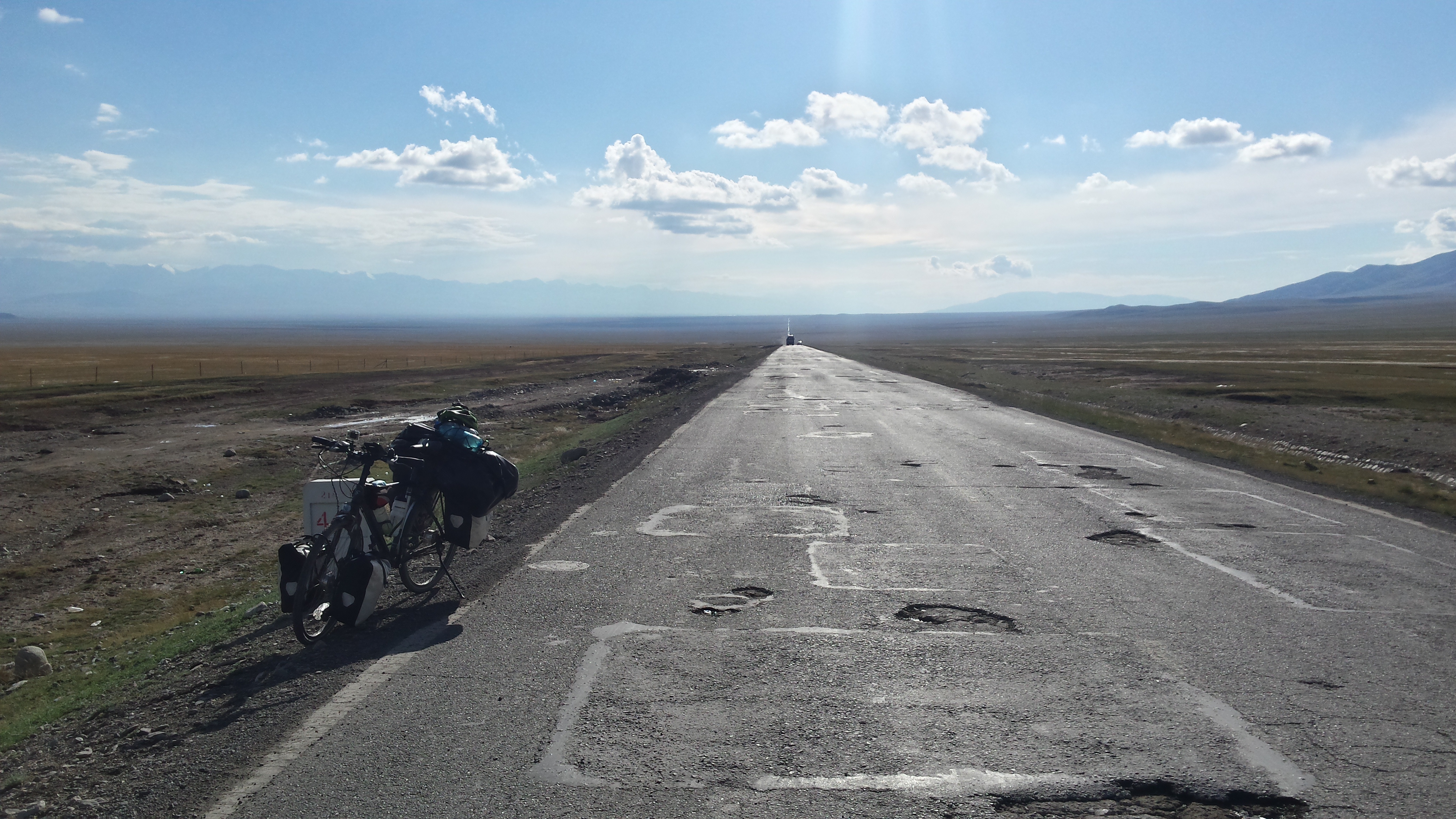 A drop of 1500m over 50km on a smooth road, and a climb of 800m over 40km on the road from hell. The police nearly didn’t let me take the road from hell – it took me two attempts to pass the police checkpoint. I’m all ready for the last climb to over 3000m before the long roll into the below sea-level furnace called Turpan.