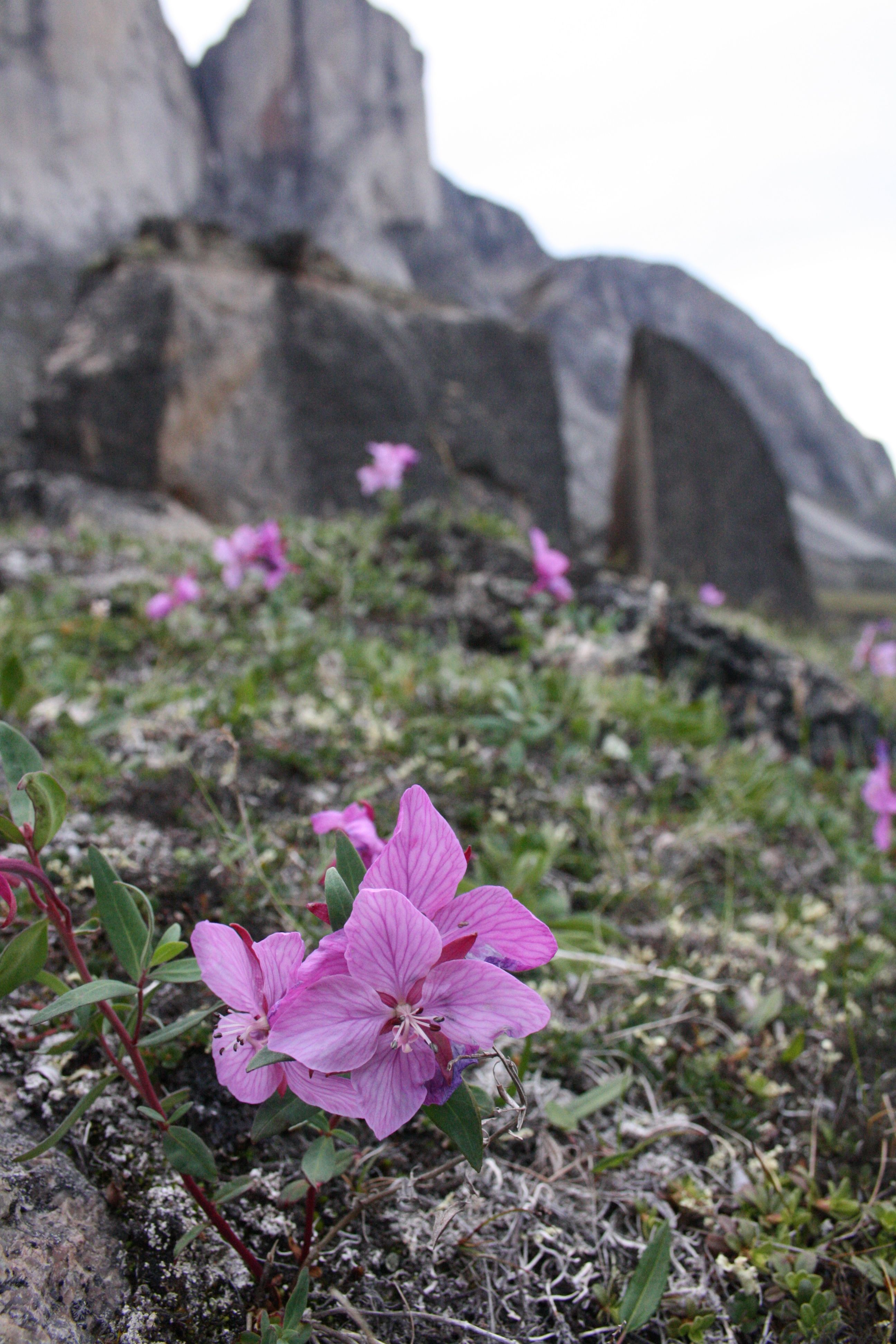 The beautiful arctic compass. A tuft of green, and purple flowers. They are more dense on the southern side of the tuft. Fascinating. The arctic.