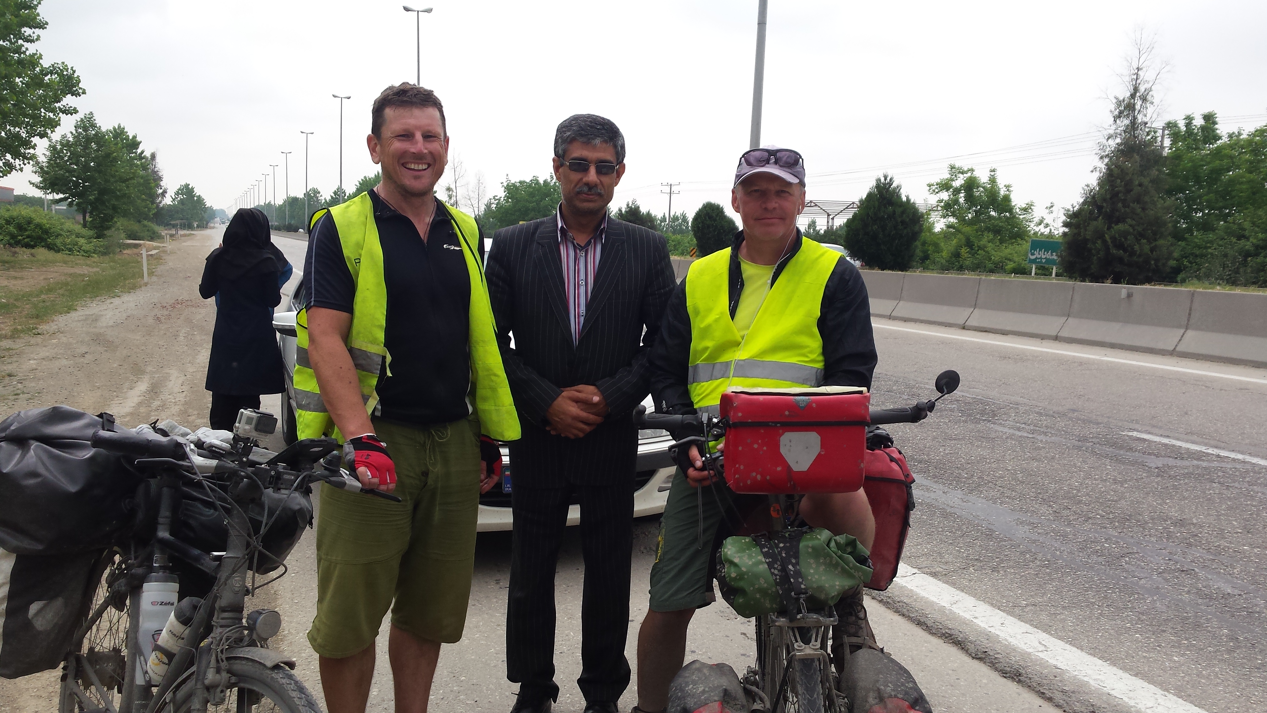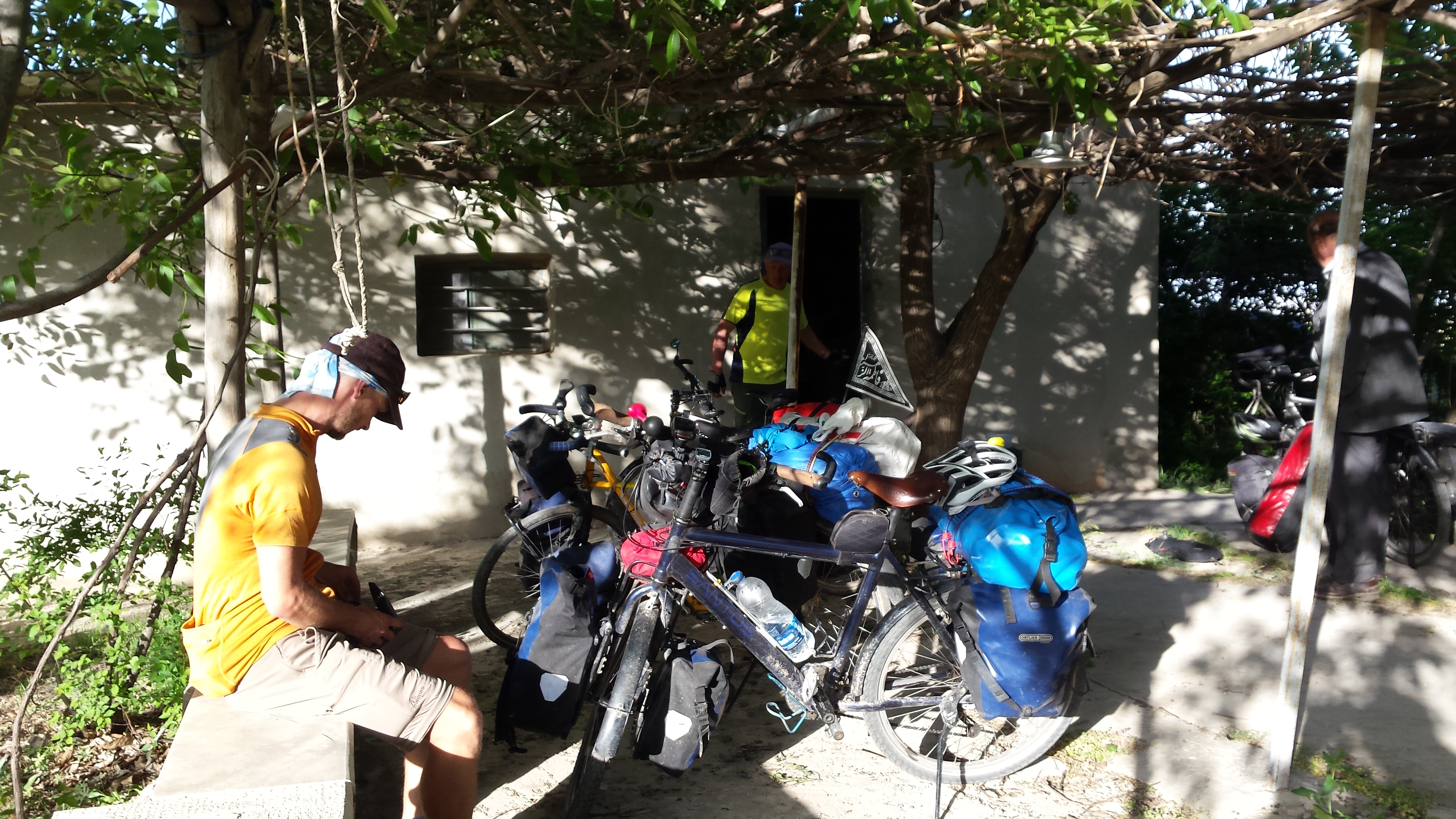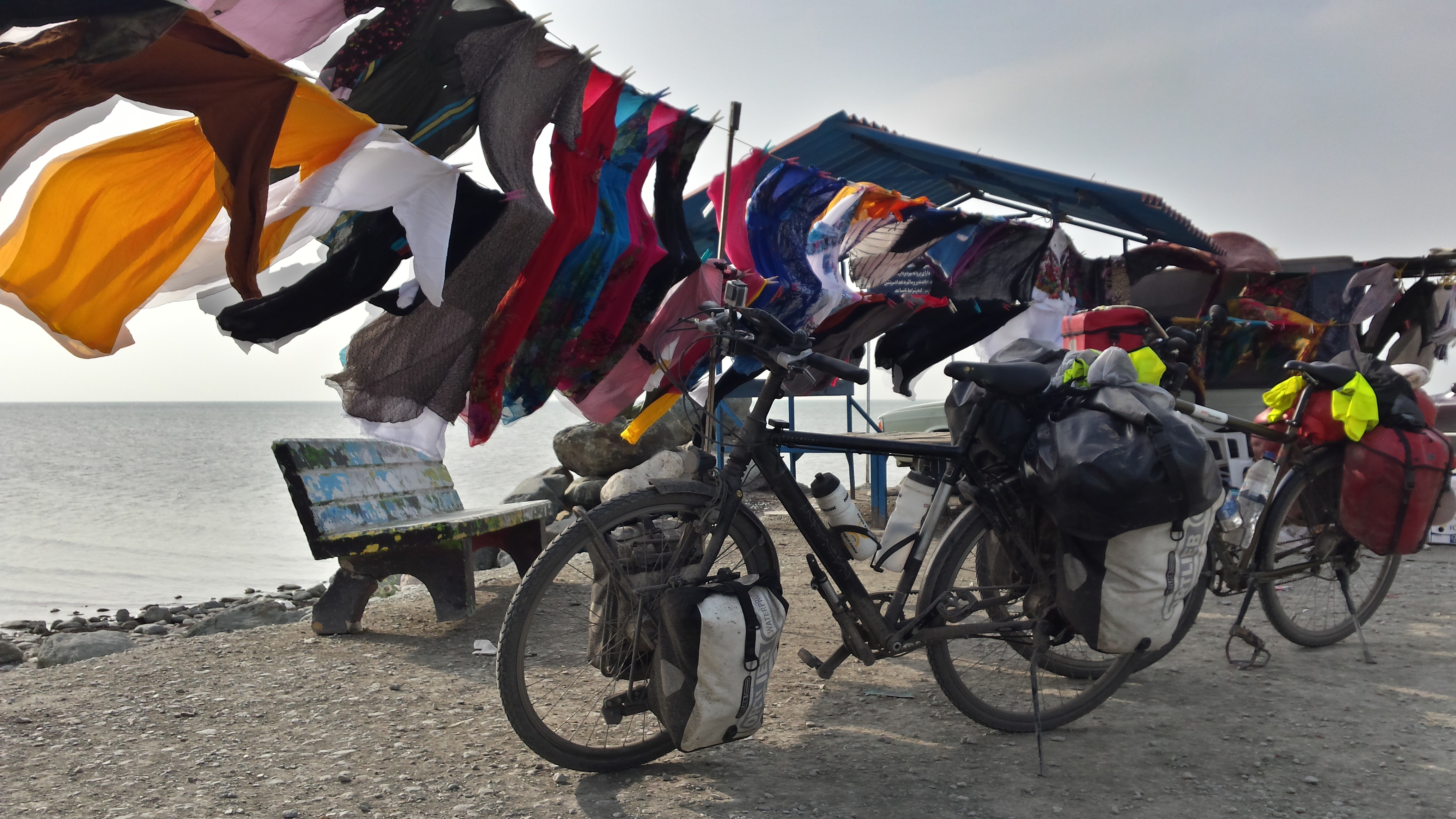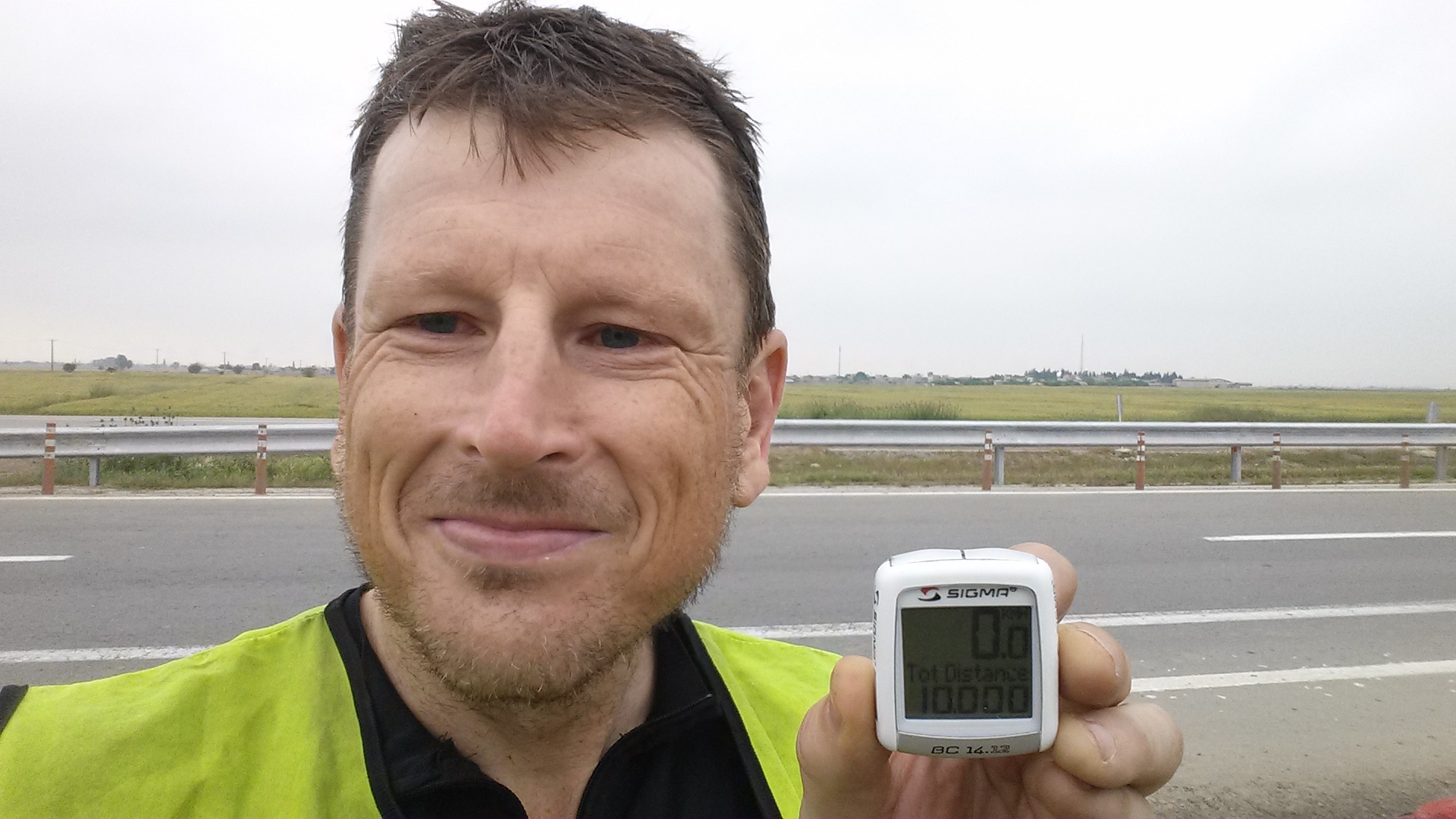 Given our 2am descent into slumber yesterday evening, our departure was quite late. We waved our kind hosts goodbye, and cycled into the grey. We couldn’t see the mountains, or much at all. A highlight was the stop to celebrate my 10000km. At 10008km we stopped in a town to celebrate properly with cake, and at 10015km our passports were checked.