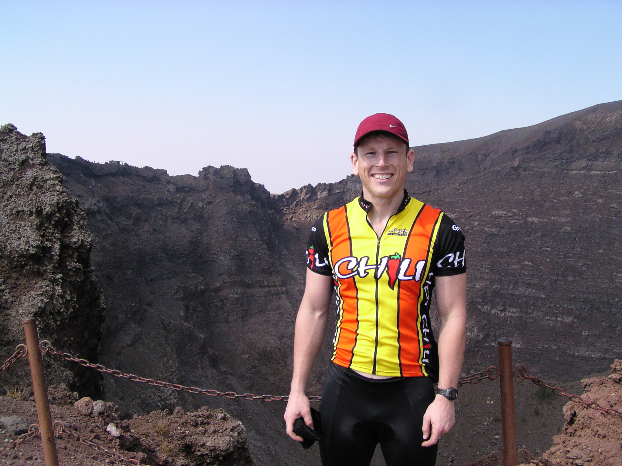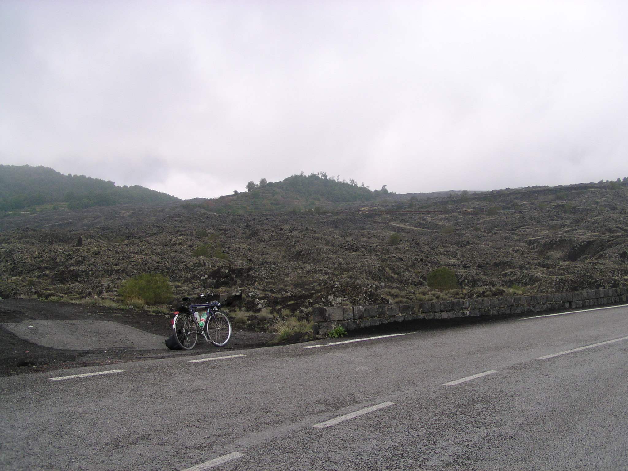 The trip started off at a volcano: Vesuvio, and ended on a volcano: Etna. On looking back at these photos, I discovered that I inaugurated my favourite cycling cap on this trip. 🙂