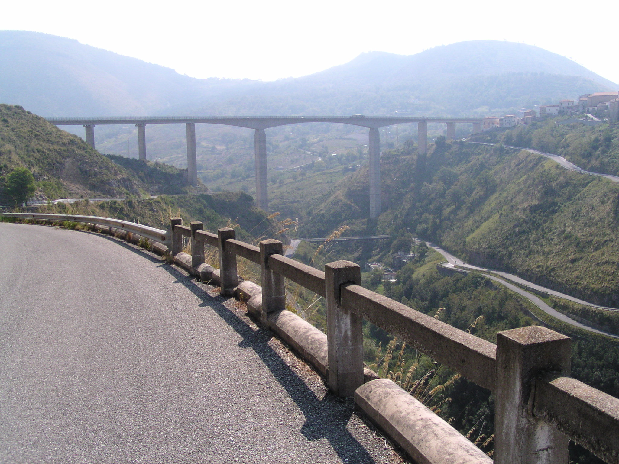The trip followed the coast. Sometimes on roads winding up and down and around and around. Sometimes on main roads with lots of traffic. Sometimes on small roads that curved down into a valley and then wound their way back out: the same distance covered by 100m on the main road bridge. It was hot going in the Italian summer sun.