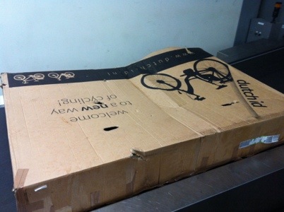 Then the fun began. I put the bike box on a trolley. The bike sagged out the bottom, and the wheel dragged along the ground as I pushed the trolley forward. I took the box off the trolley and taped up the bottom. I then made it through to the customs door. I was flown back to my driving exam days, doing a 7 point turn to navigate through a door which was too narrow for the bike.
