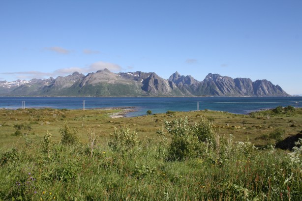 My plans of cycling all the way to Sortland (at least along the scenic route) were not realistic. In making these plans I was studying 2 different maps with different scales, and did a common trick of misjudging distances. 🙂 Anyway, while cycling to Stokmarnes it soon became clear that with head wind and hills, Sortland was not on.