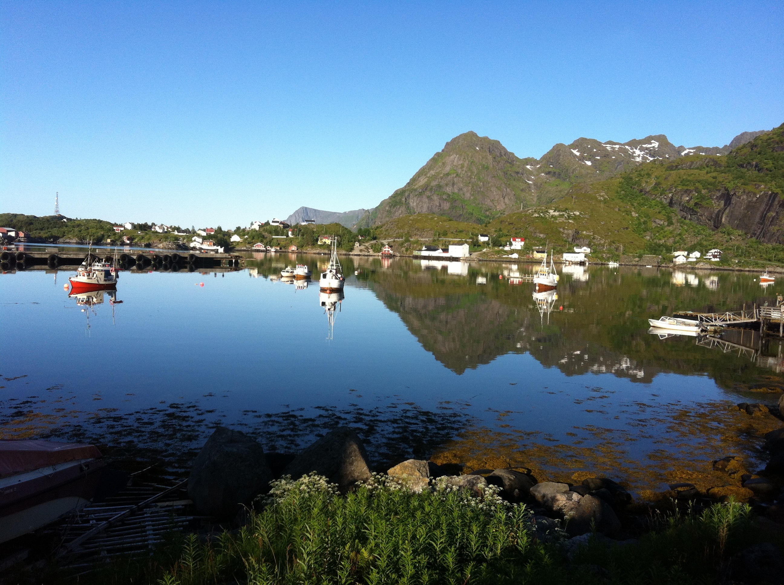 My trip started with perfectly clear skies and not a breath of wind. I rolled passed Rheine and along the coast. The water was still. A picture of tranquility: boats lying quietly on the mirror water, next to quaint fisher’s huts and spectacular mountains looming in the background. The mood of the cyclist is a buoyed by such perfect conditions and some of the best scenery in the world. This is what cycling is all about.
