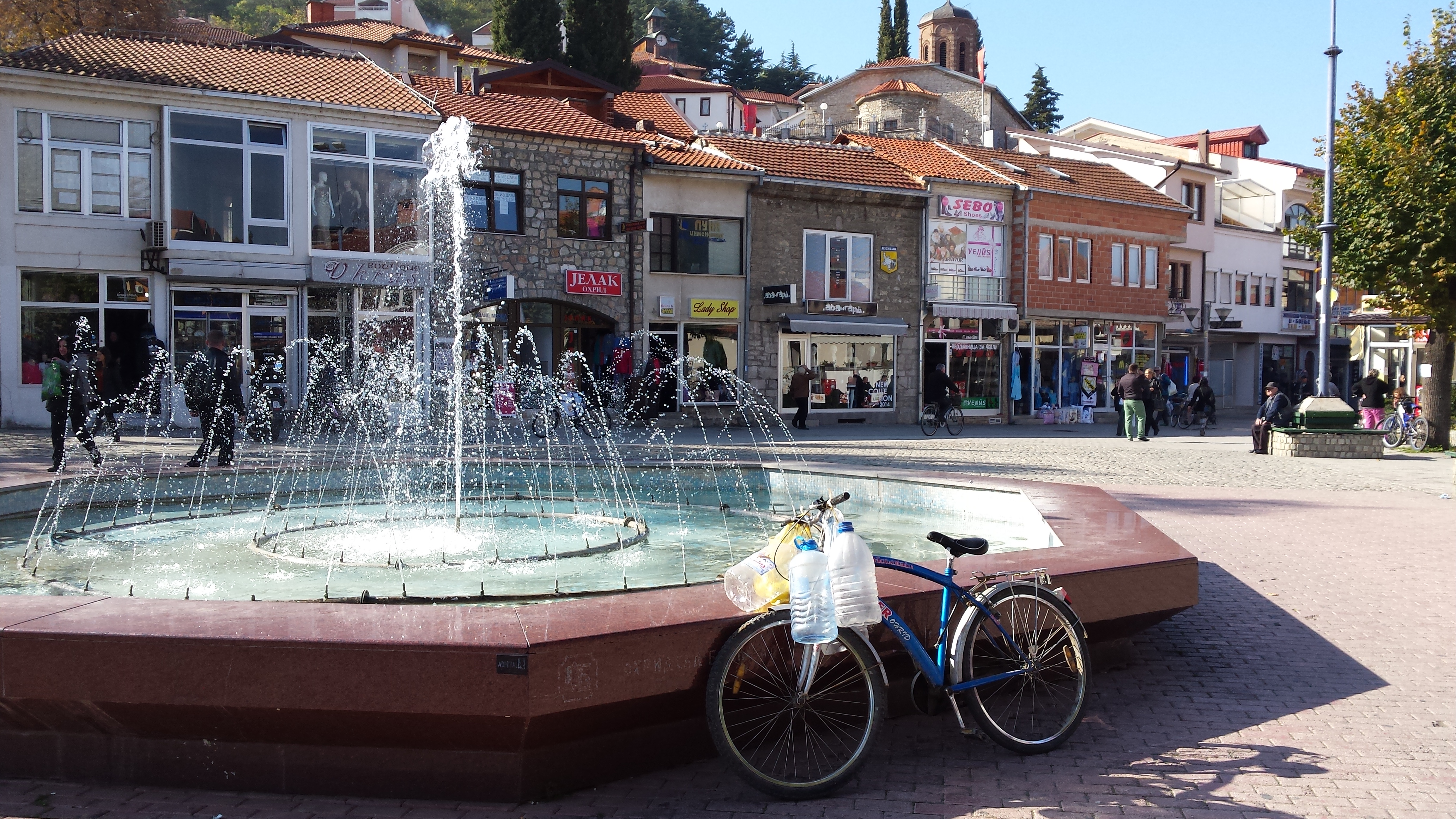 Welcome to Macedonia, and hello again, James. In Macedonia the roads are smoother and built such they are less steep although the landscape is the same. A walk in the park as I cruised along a gorgeous valley in the sun to Lake Ohrid where I joined forces with James again.