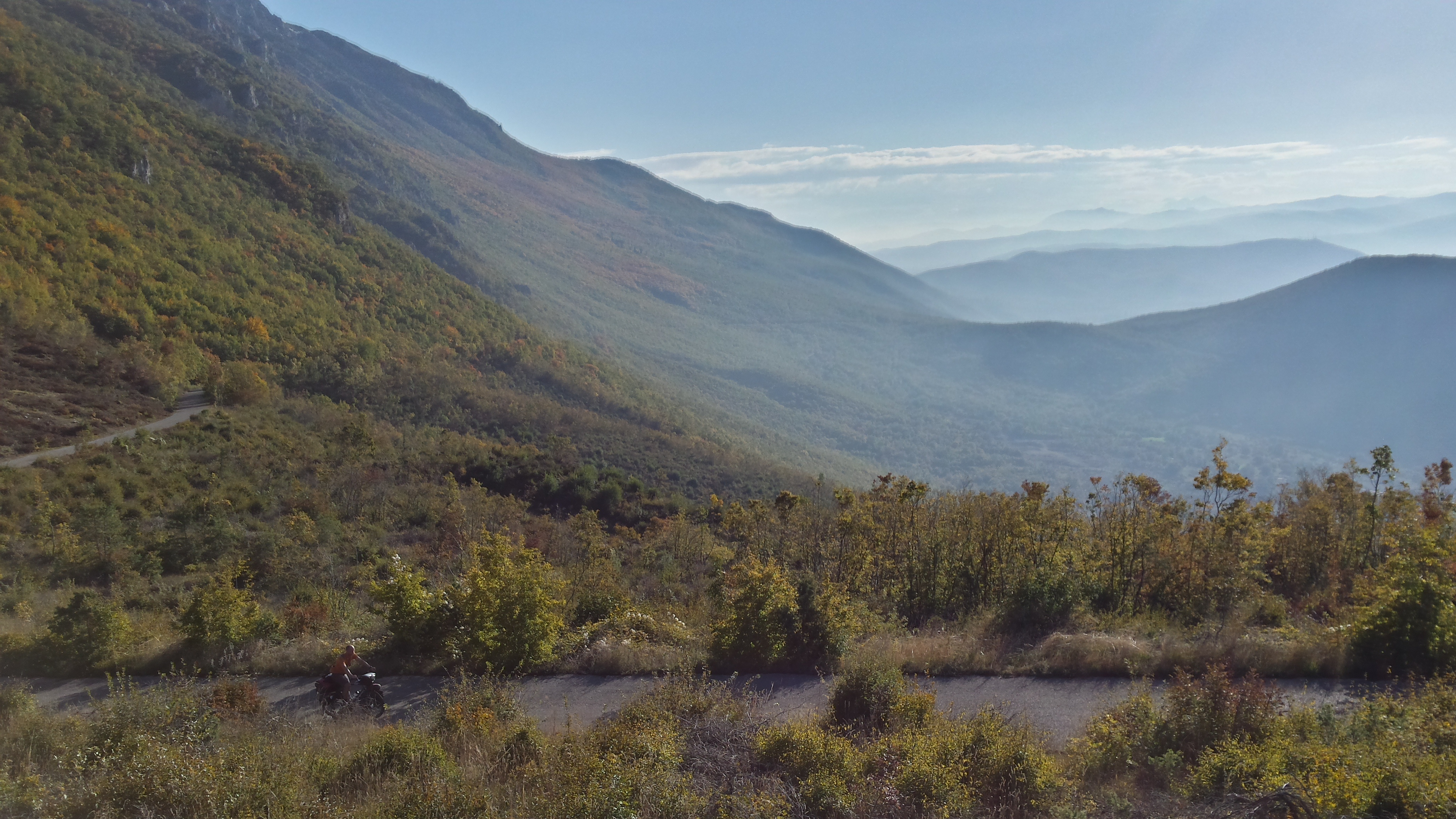 While cruising along the road through the valley, nestled between steep, high mountains, I could only try to compare and determine what is different. Why is it so easy cycling here? Why is the road less steep? Well, the road didn’t suddenly drop to cross every little stream, but rather there were some (slightly) longer bridges. The road was also cut into the mountain more, meaning that not every bump needed to be traversed. Whatever it was, I zoomed along and was chatting to James at lunch. I put my tent up next to his with a view out over Lake Ohrid, and we spent hours sharing stories and making plans going forward.