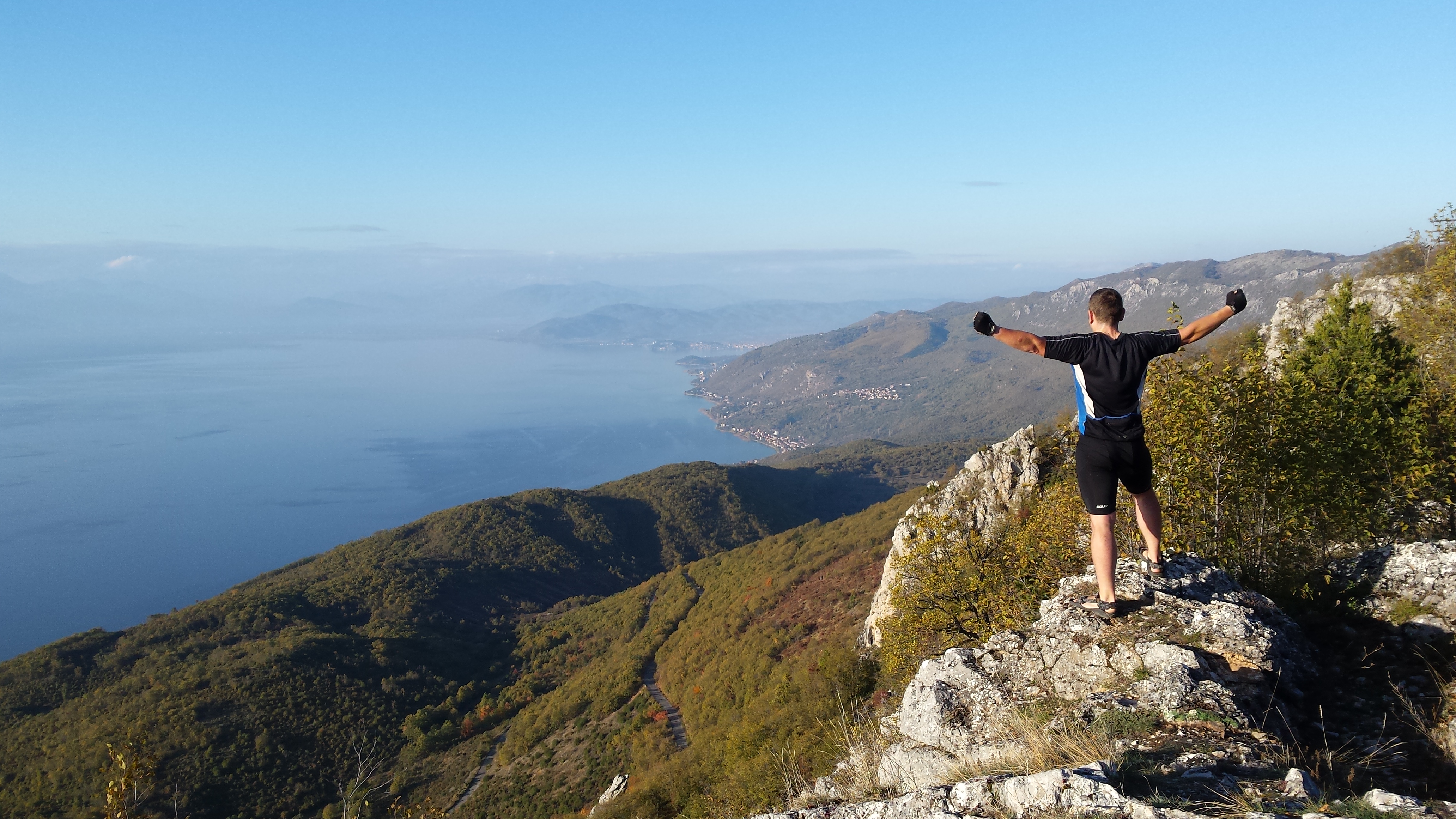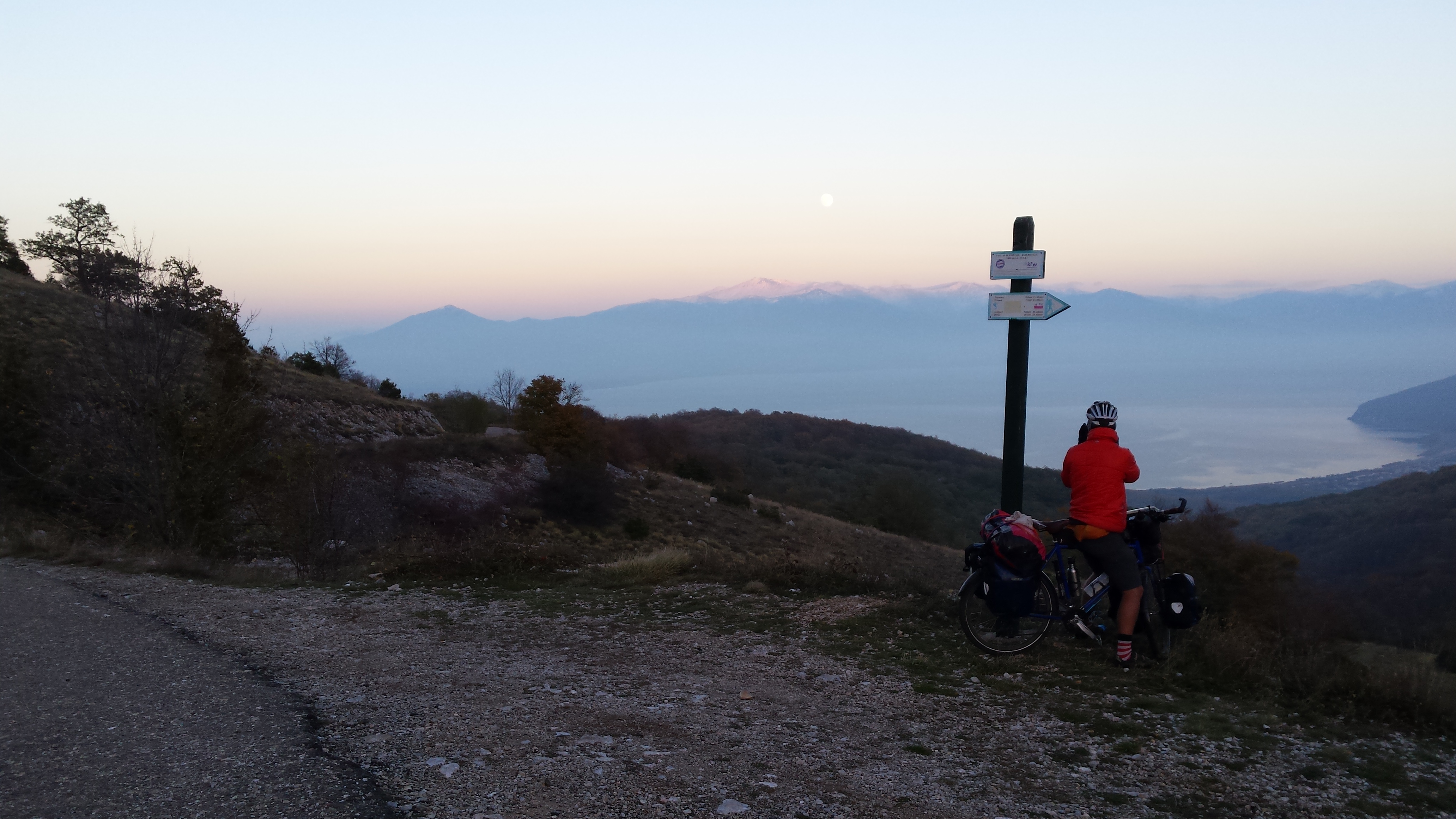 And then the most glorious amazing climb up to 1600m in the soft, orange evening sun, with a view to die for over Lake Ohrid. Man, this ride was amazing.