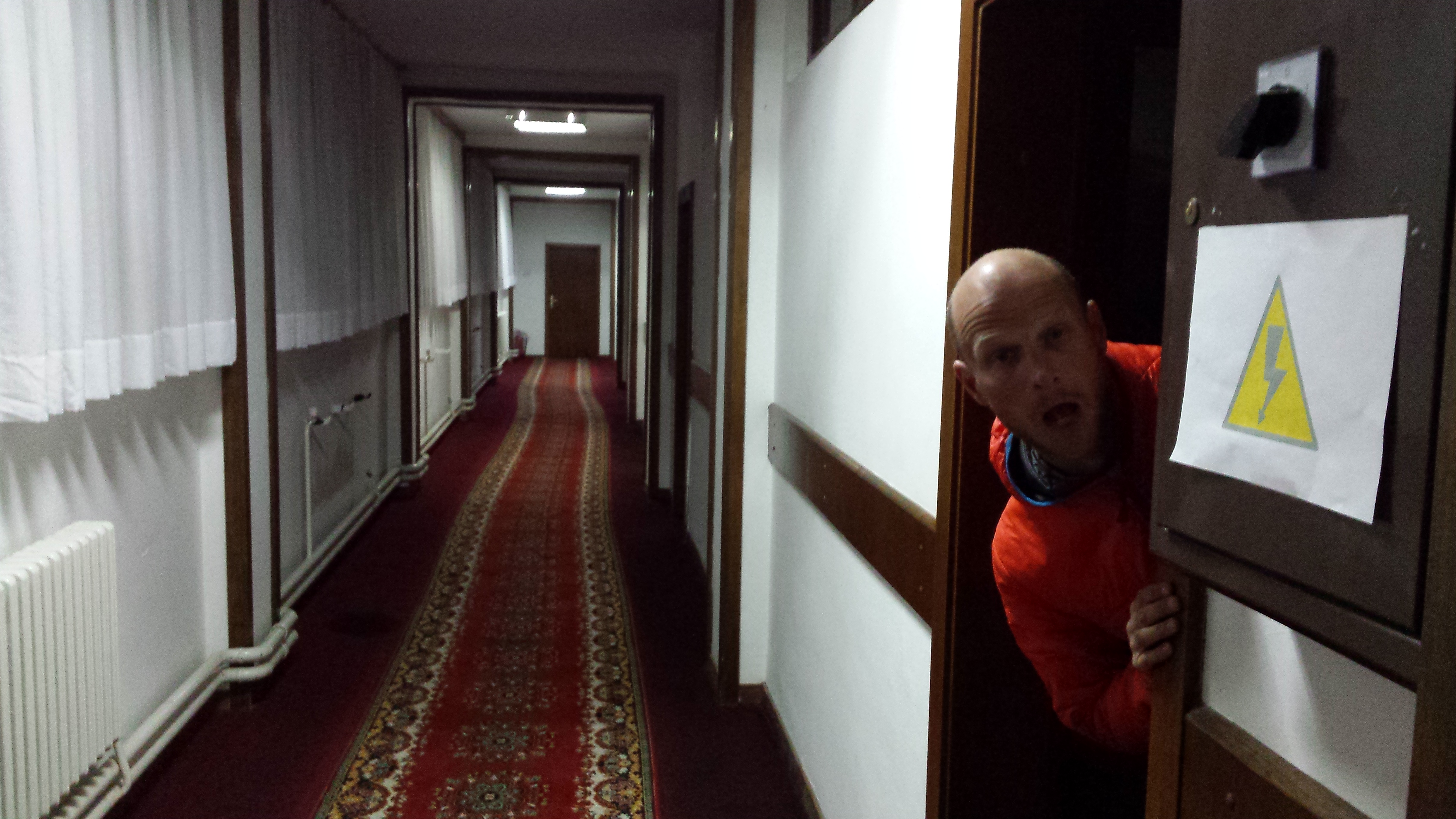 With darkness approaching, we scooted down the mountain. Our first choice of lodgings was in an abandoned hotel on the lake shore. After a minor incident with a dog, where my loud screaming finally scared away the growling, teeth-bearing dog, we opted to continue down the road along the lake in the dark. We are staying in a luxurious resort from the 70s, ideal for an Agatha Christie novel. It was Dr. Harris, with the inner-tent in the bedroom.