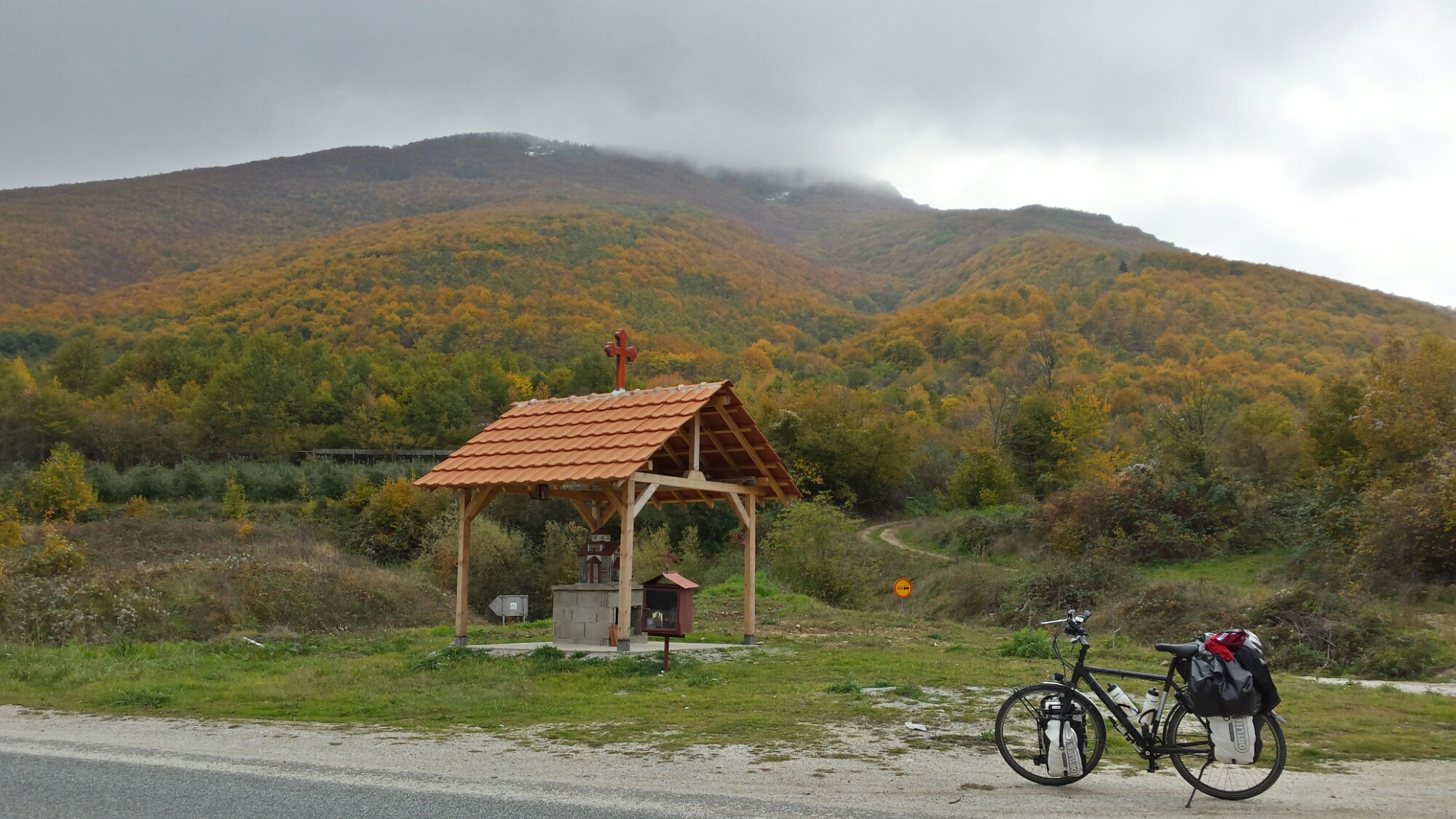 It is a different feeling cycling in a grey, overcast, cold landscape. Sleeping in and eating is more appealing than cycling. We made our way to Bitola and called it a day. We had a lovely evening with Goce – our warm shower host in Bitola. Greece tomorrow.